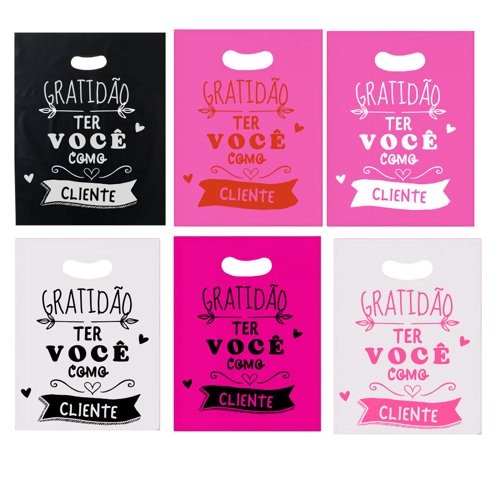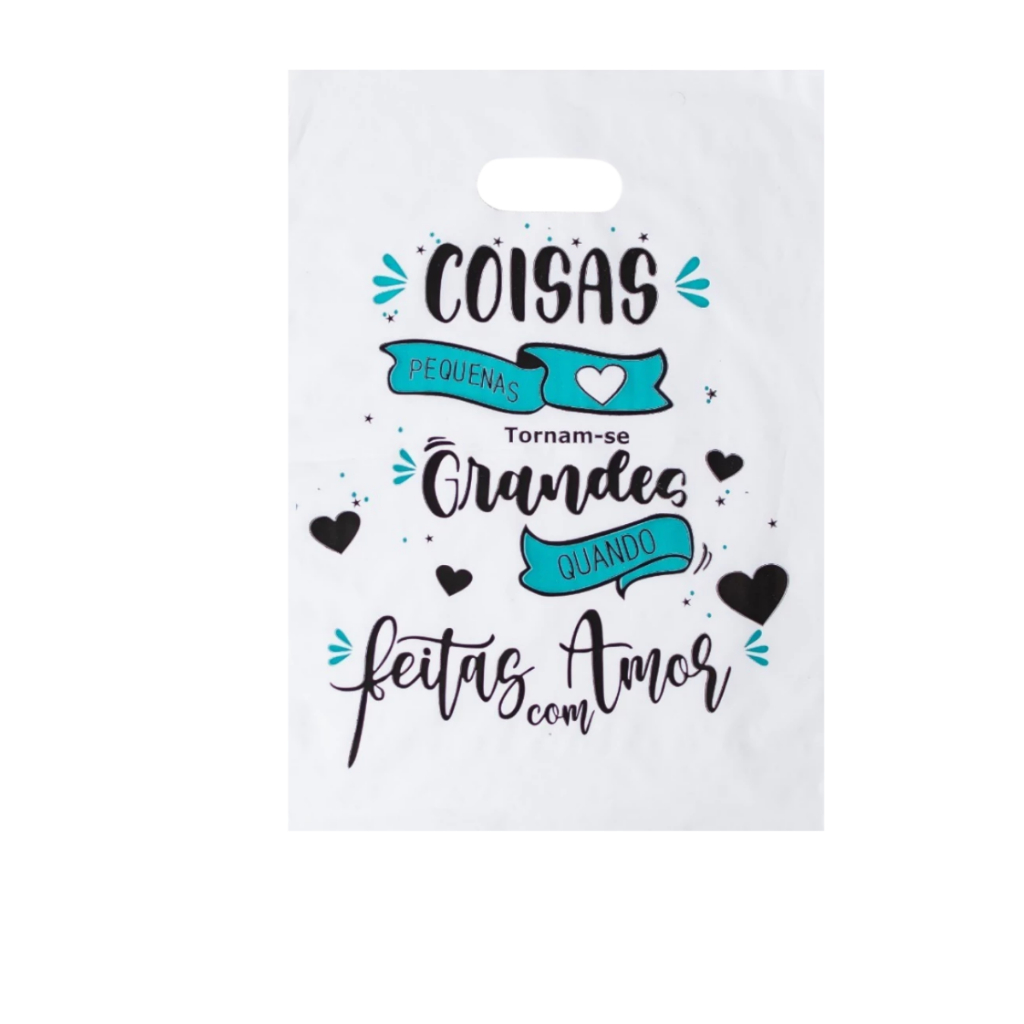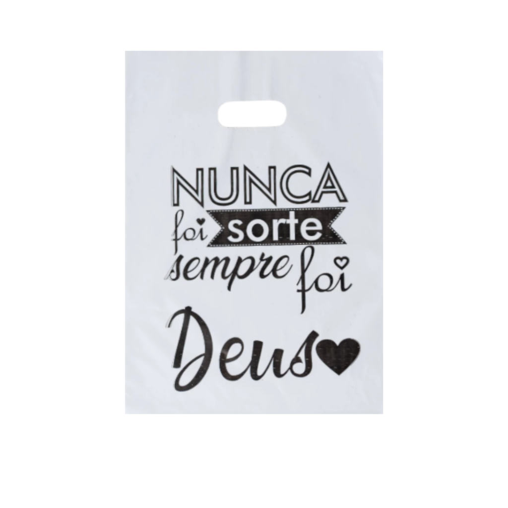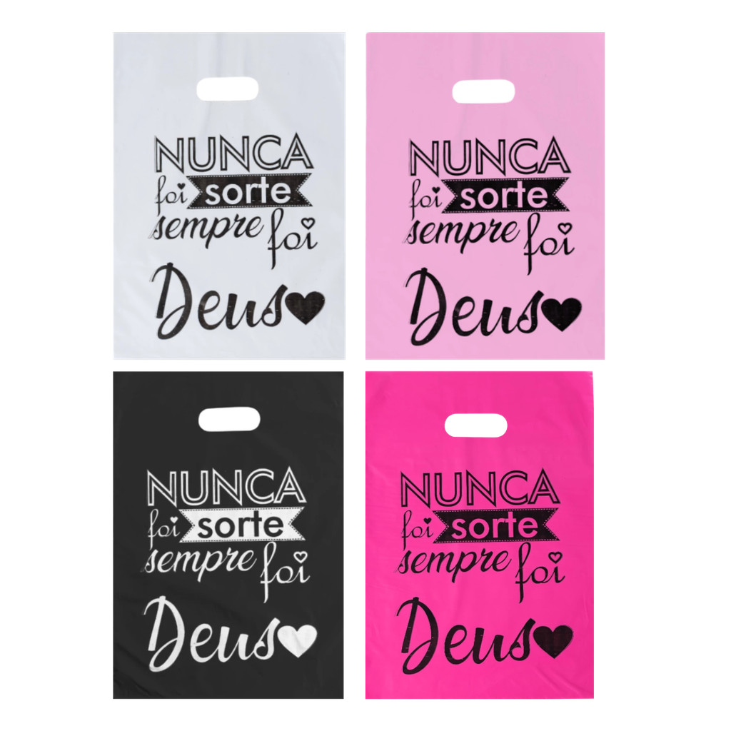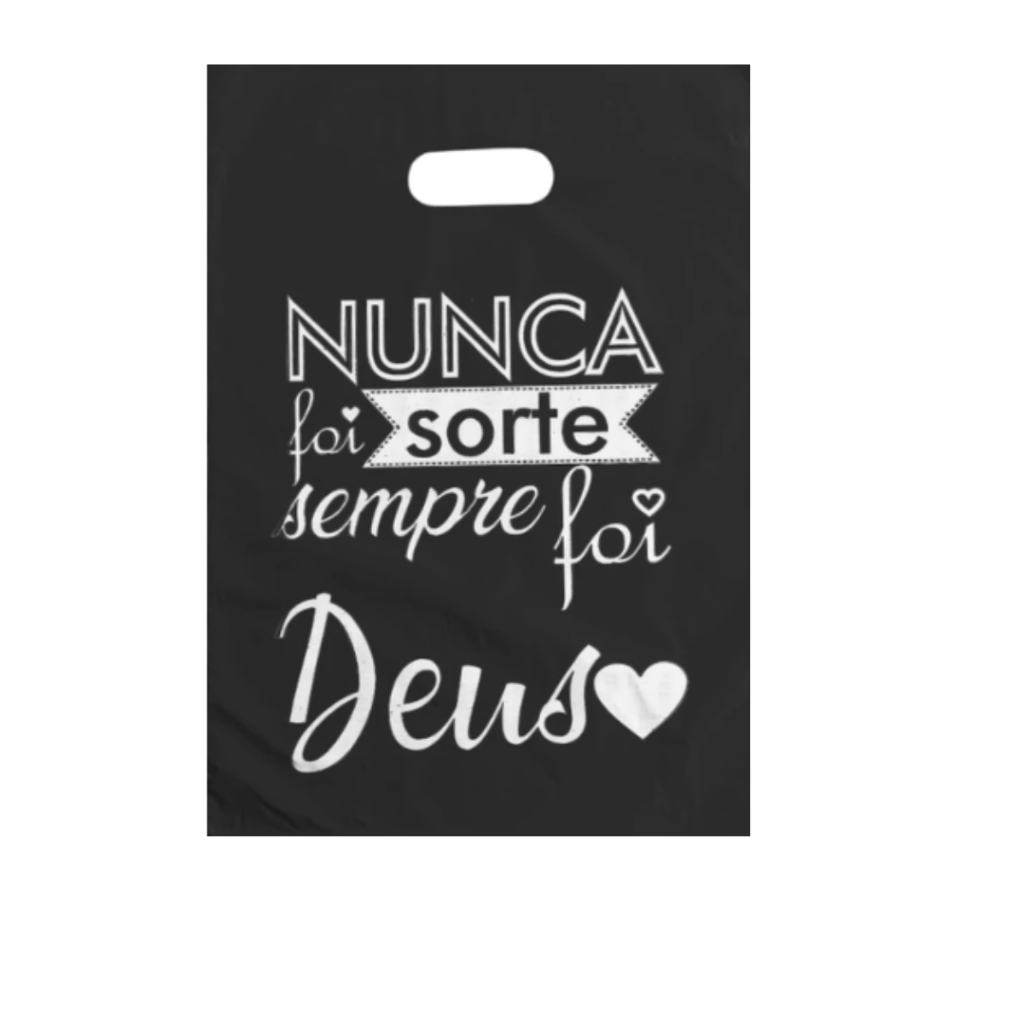 50 Sacola Boca de Palhaço Personalizada P, M e G Diversas Estampas Sacolinha Alça Vazada Frase Gratidão, Nunca foi Sorte