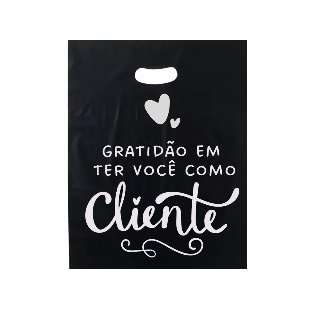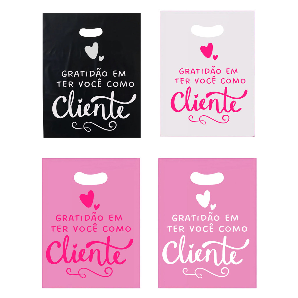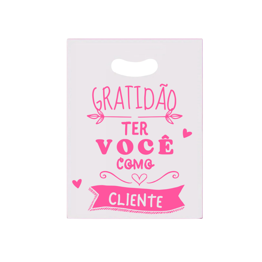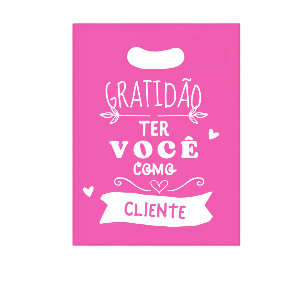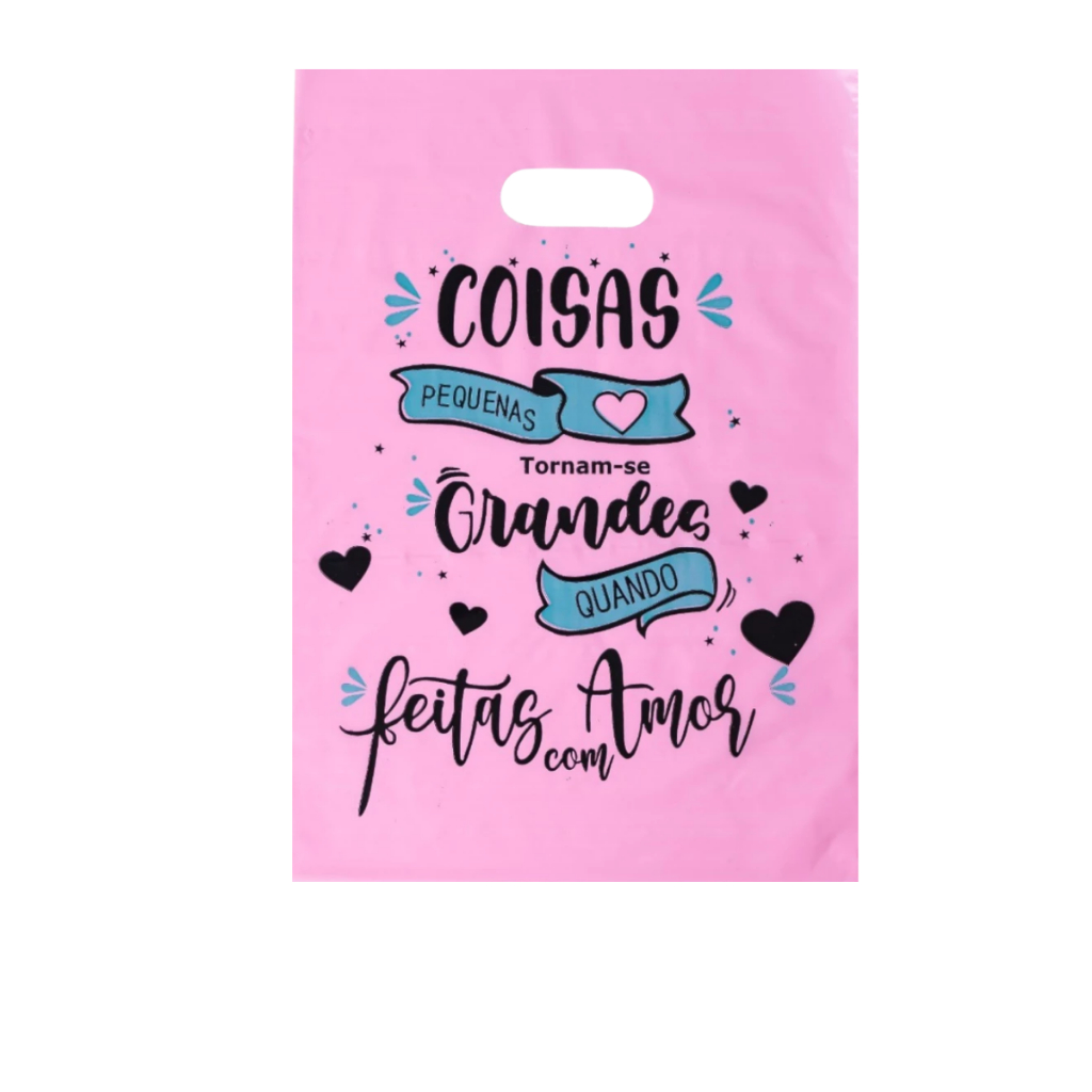 50 Sacola Boca de Palhaço Personalizada P, M e G Diversas Estampas Sacolinha Alça Vazada Frase Gratidão, Nunca foi Sorte