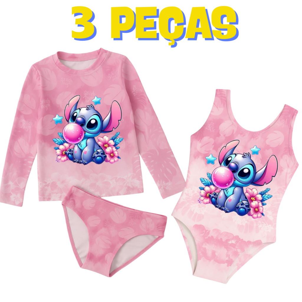 Kit Uv Infantil (Camisa De Proteção + Biquíni+ Body) Menina Verão