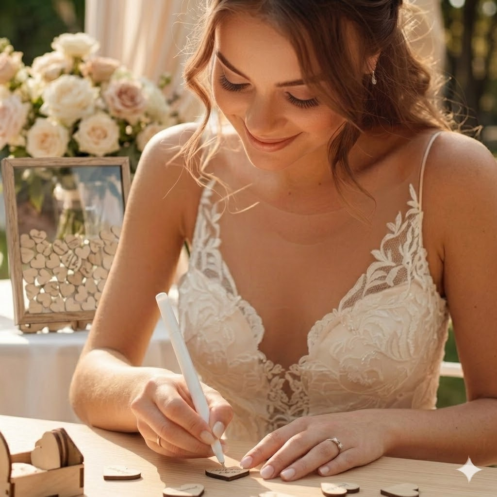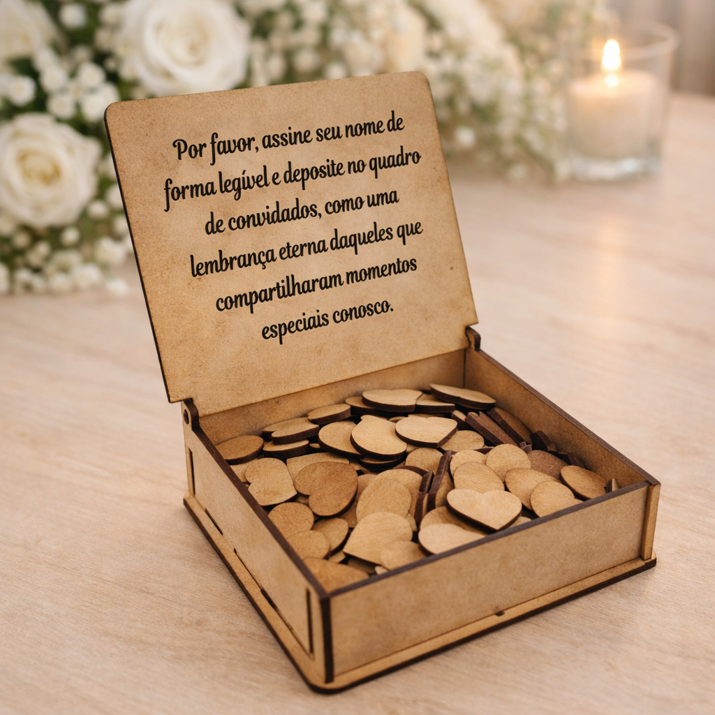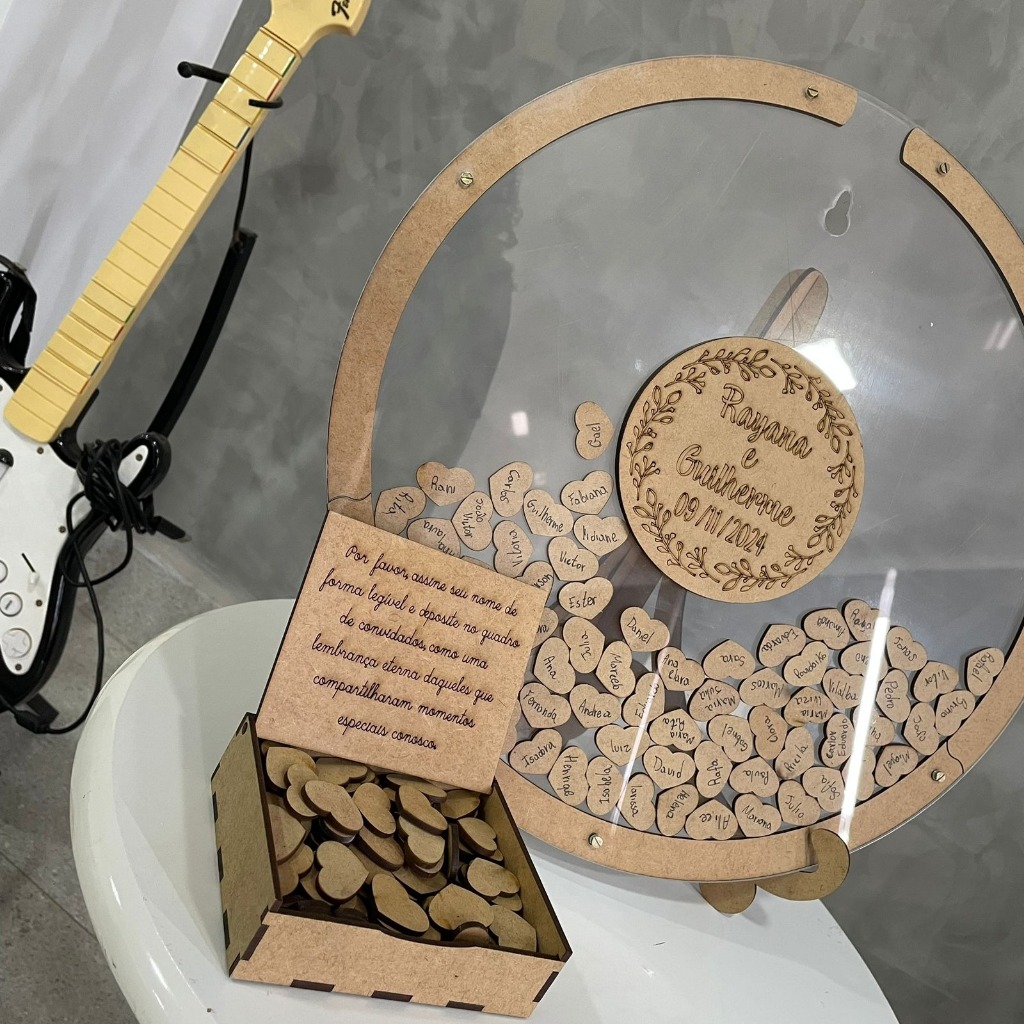 Quadro de Assinaturas Casamento Redondo Acrílico Transparente Personalizado com Corações MDF