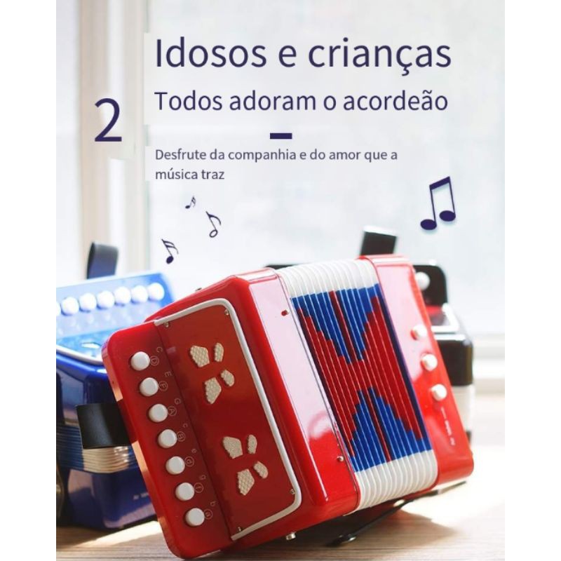Acordeon Sanfona Infantil 7 Botões 3 Baixos