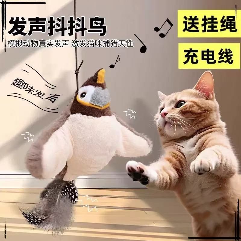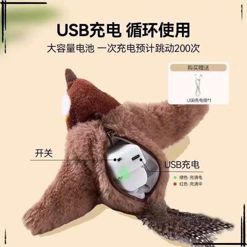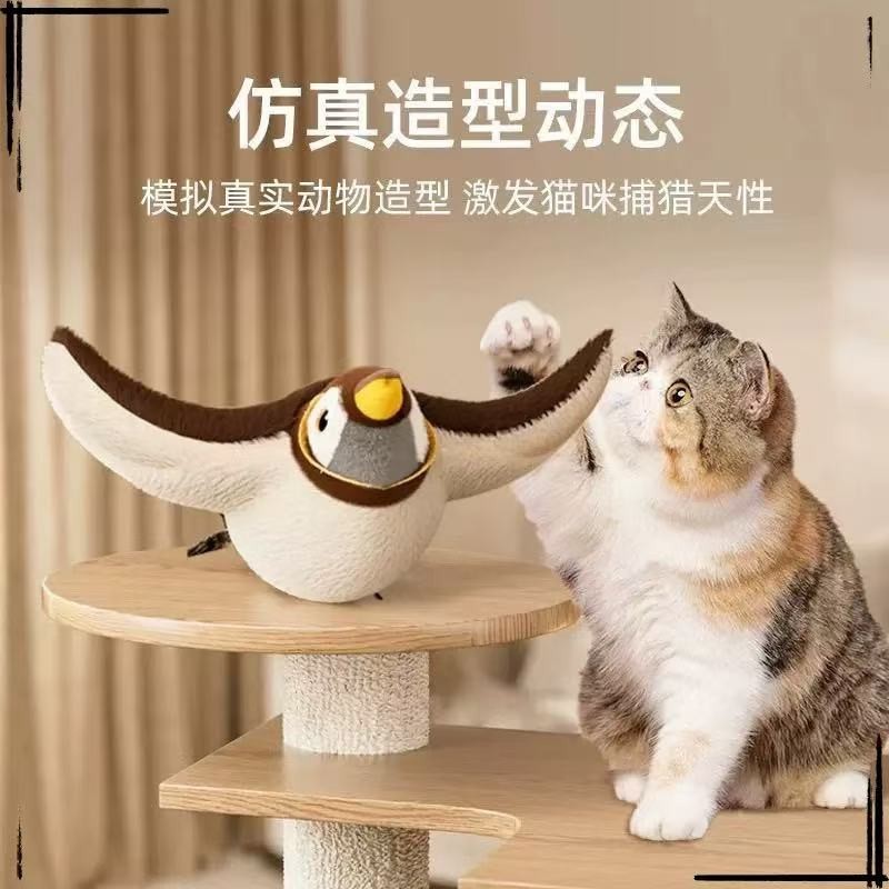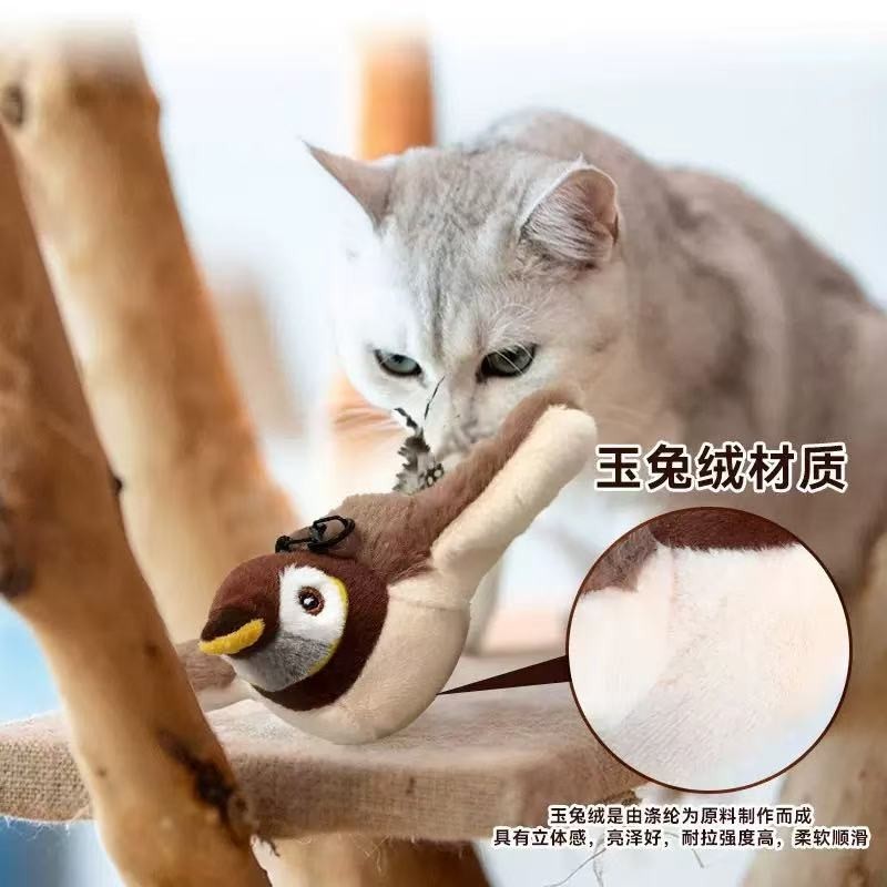 Pássaro de Pelúcia com Som Realista para Gatos Brinquedo Animado Interativo