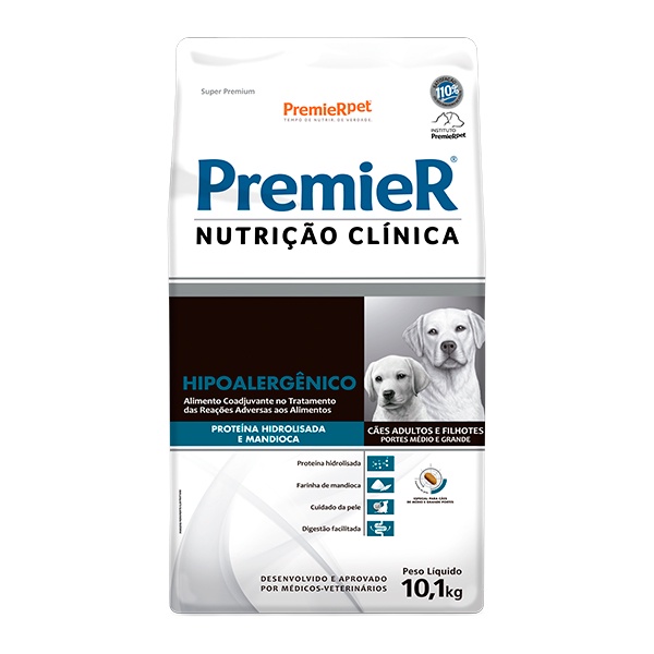 Ração Premier Nutrição Clínica Hipoalergenico para Cães de Medio e Grande Porte Sabor Proteina Hidrolisada e Mandioca - 10,1Kg