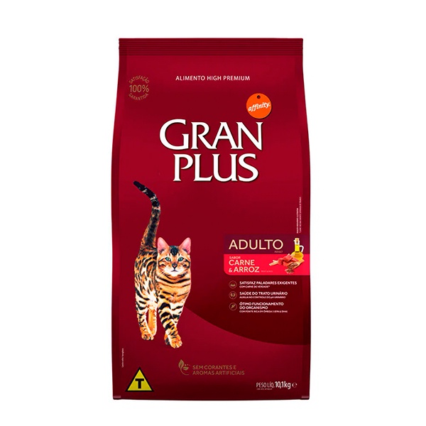 Ração Gran Plus para Gatos Adultos sabor Carne e Arroz - 10,1Kg