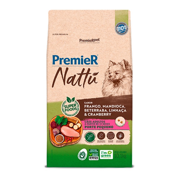 Ração Premier Nattu para Cães Adultos de Pequeno Porte Sabor Mandioca - 10,1Kg
