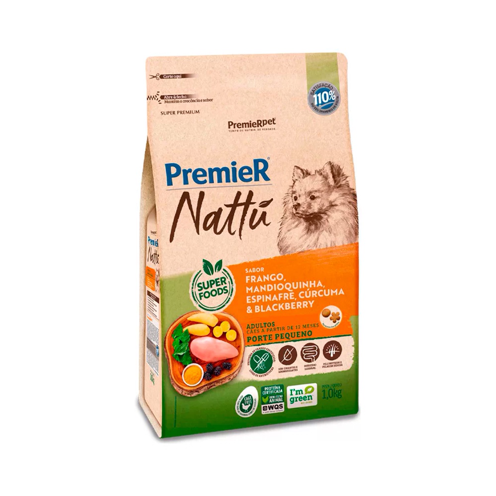 Ração Premier Nattu para Cães Adultos de Pequeno Porte Sabor Mandioquinha - 10,1Kg