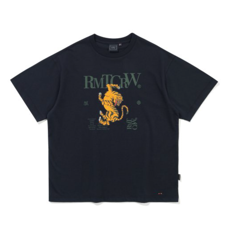 RMTCRW X Seventeen Woozi-REEL TIGER TEE SHIRT (3 Cores)/Coroa Romântica De Carvão Vegetal Da Marinha Cinza Claro