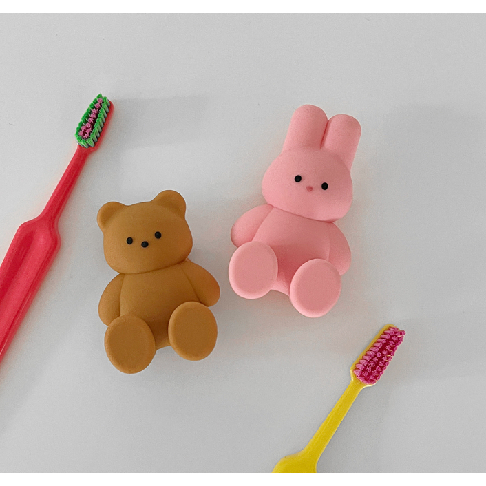 The Ninemall-Conjunto De Ursinho De Pelúcia + Porta Escova De Dentes De Coelho/Fofo