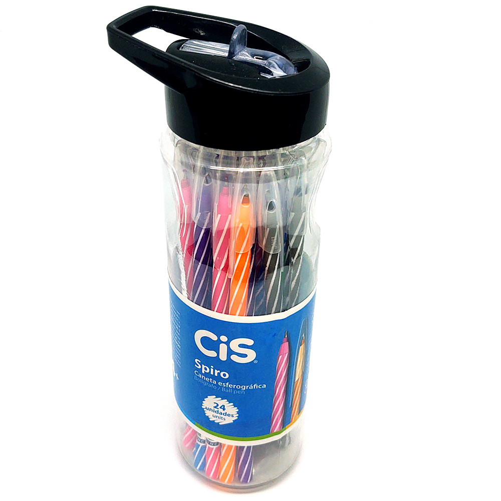Caneta Spiro CiS Colorida Garrafa Pote - 24 Unidades