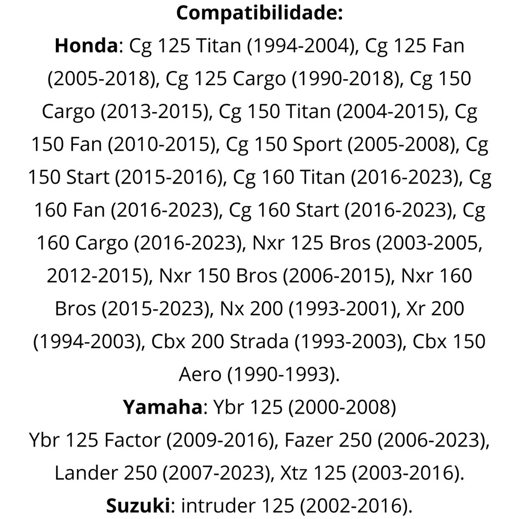 Cachimbo De Vela Titan Fan Bros 125 150 160 YBR Fazer Lander Intruder Colorido Vermelho Universal