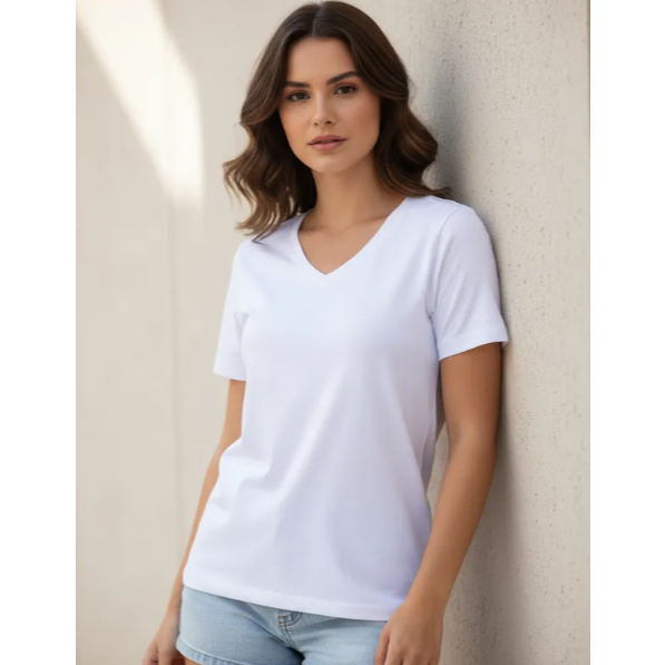 Camiseta Feminina Baby Look Gola V Branca Enfermagem Oferta