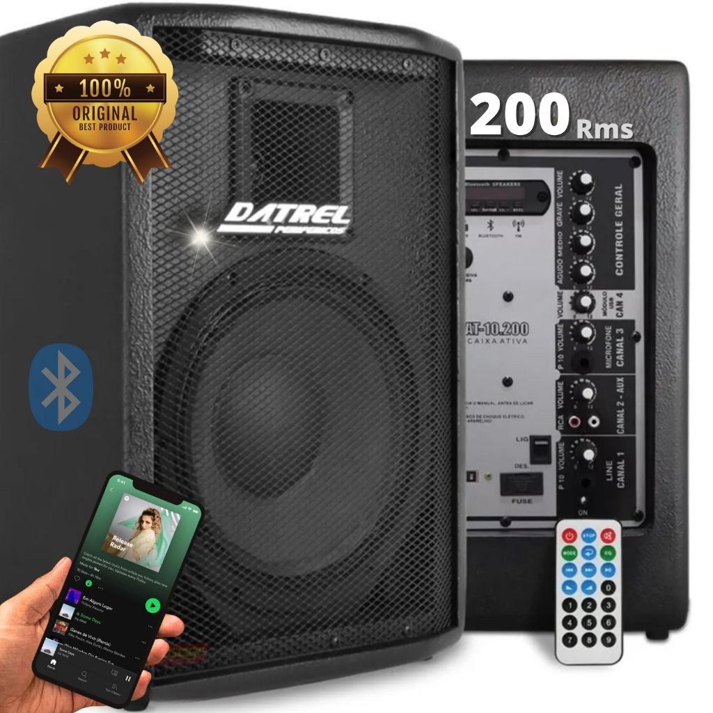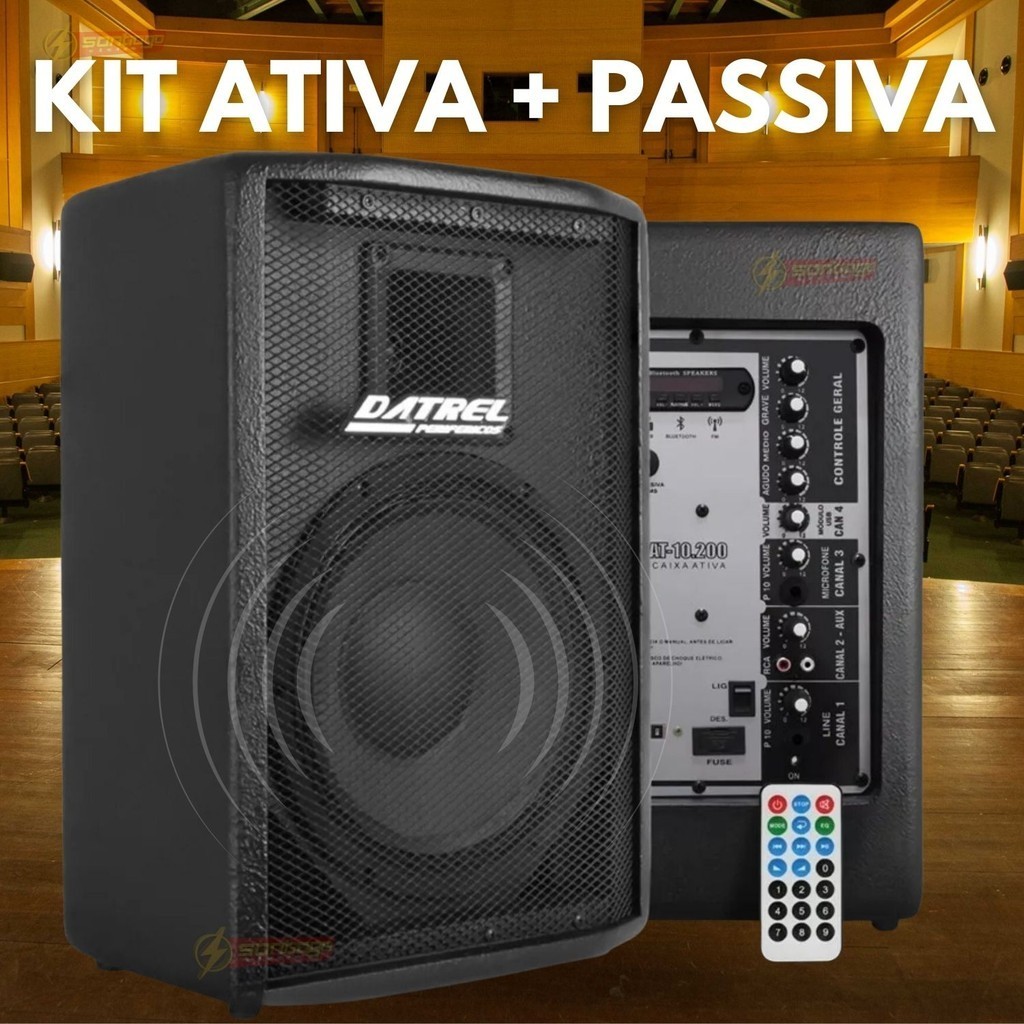 Kit Caixa de Som 400w Profissional Datrel 10 Amplificada Ativa + Passiva acustica Palco Igreja show