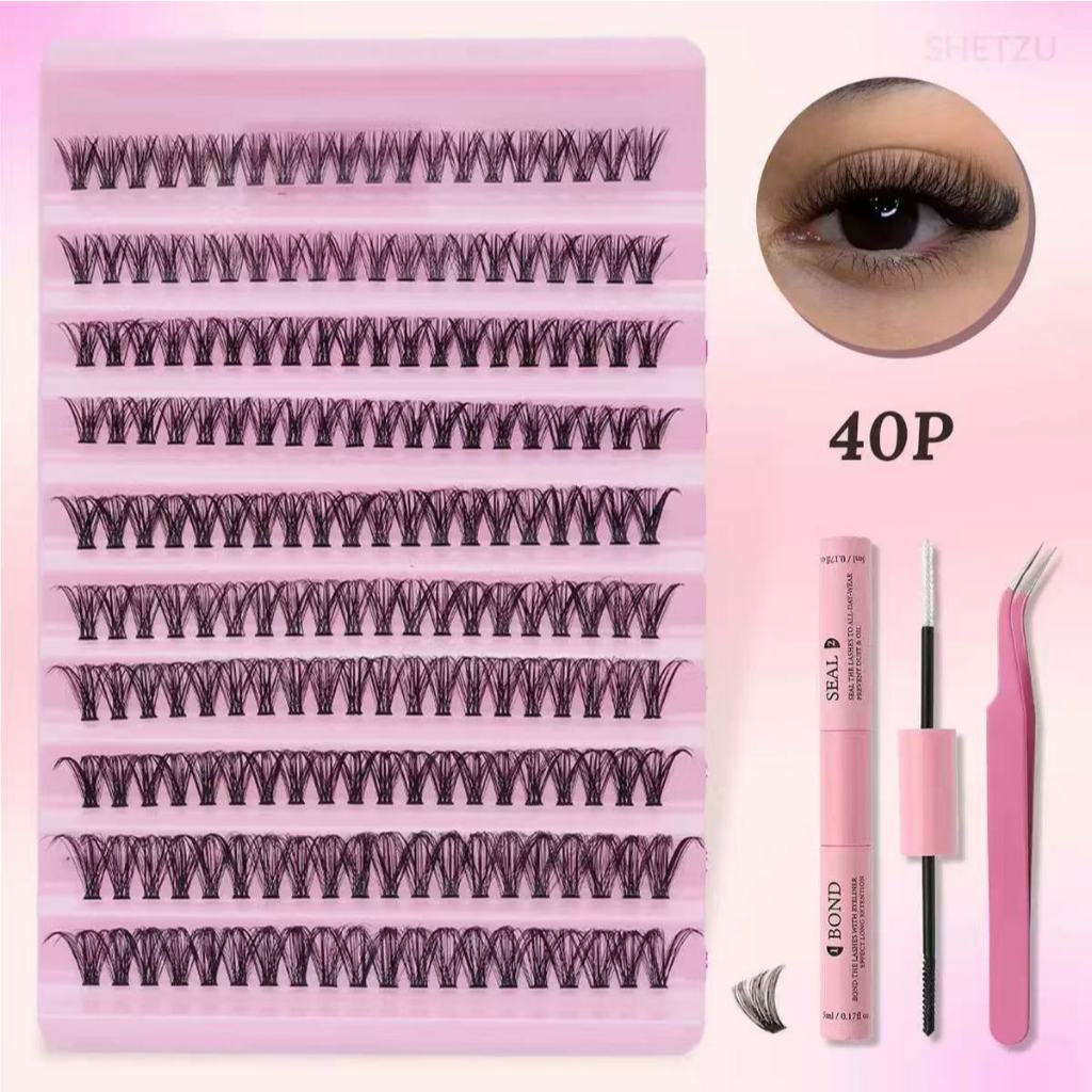 Kit de Extensão de Cílios 200 feixes 20D/3D/40/50D/60D/80D 8-16mix Com Pinças+ Cola 024-226