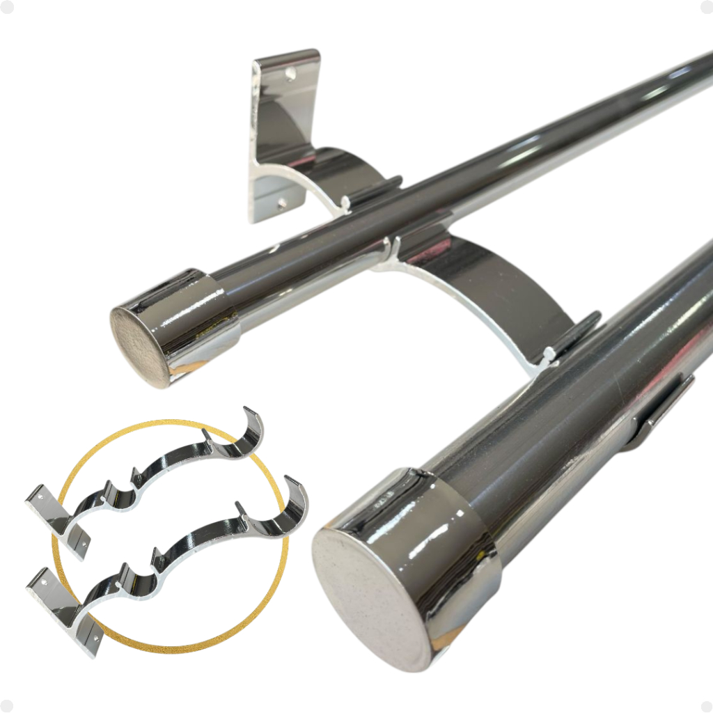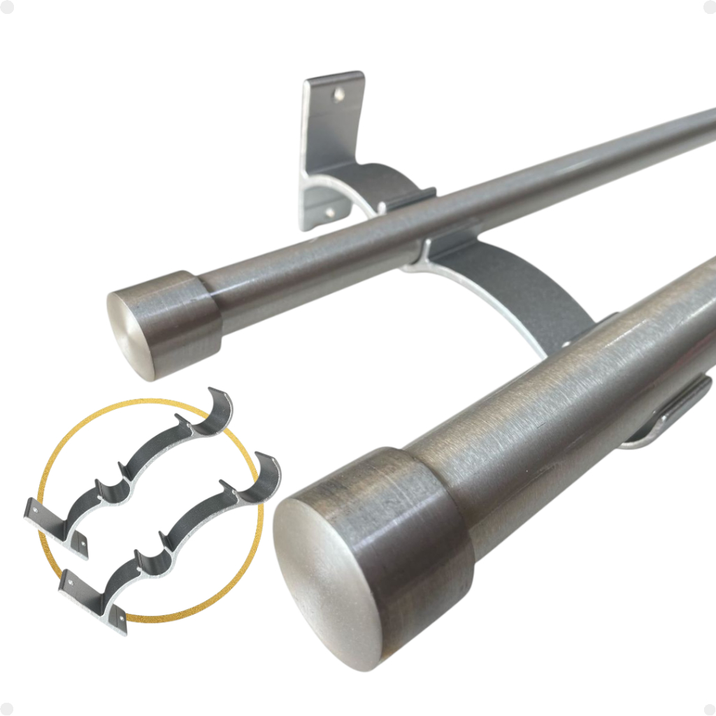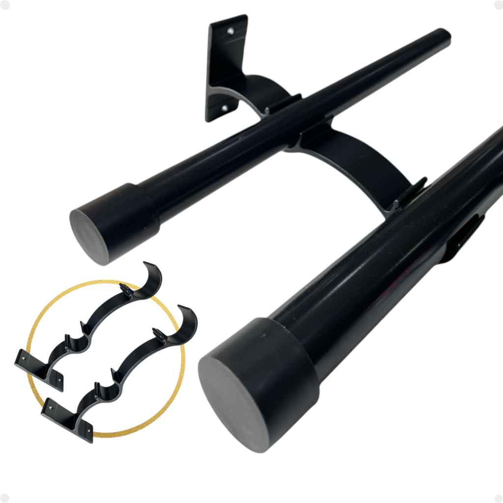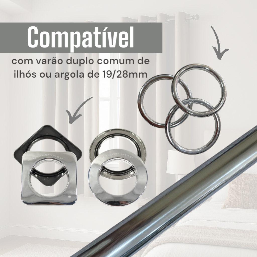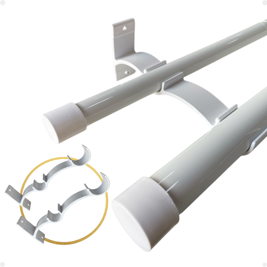 Kit 2 Suporte Duplo Comum Perfil Varão Cortina 19/28mm Ilhós Argola Instalação Par