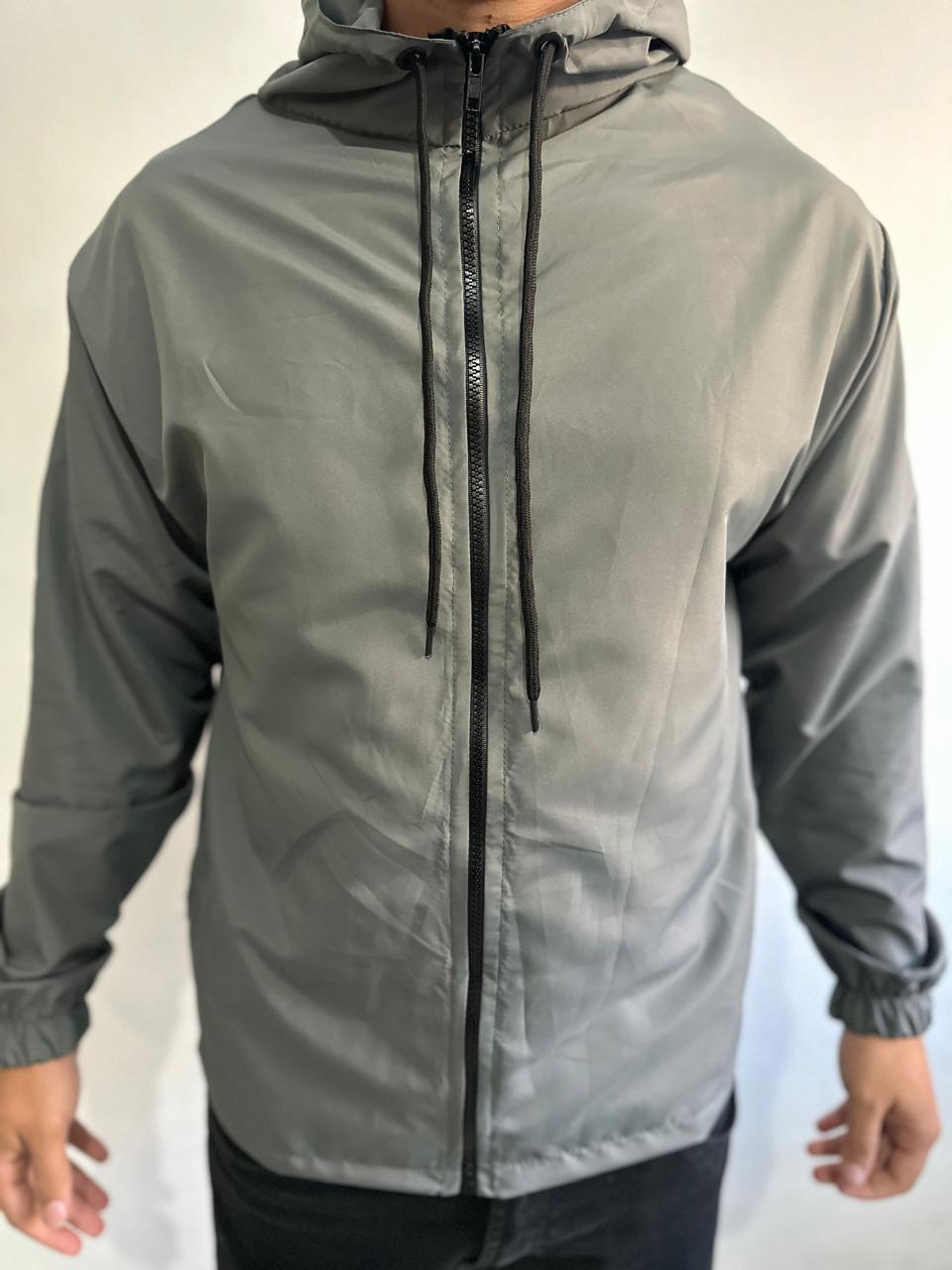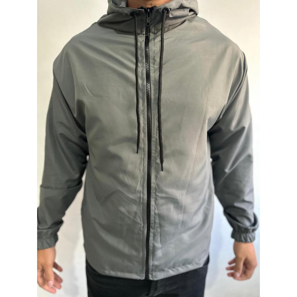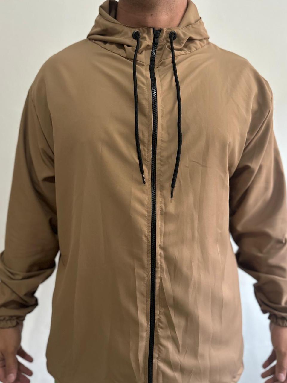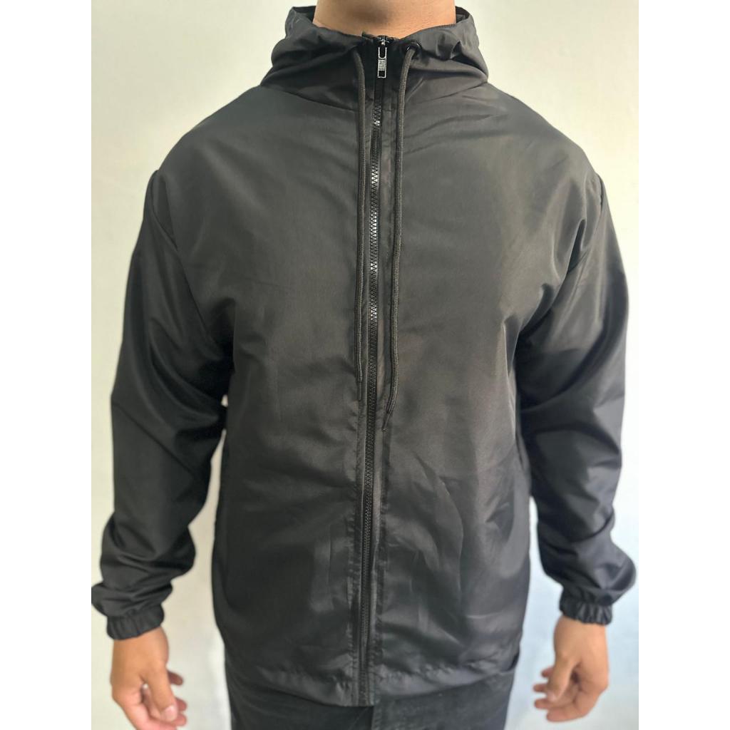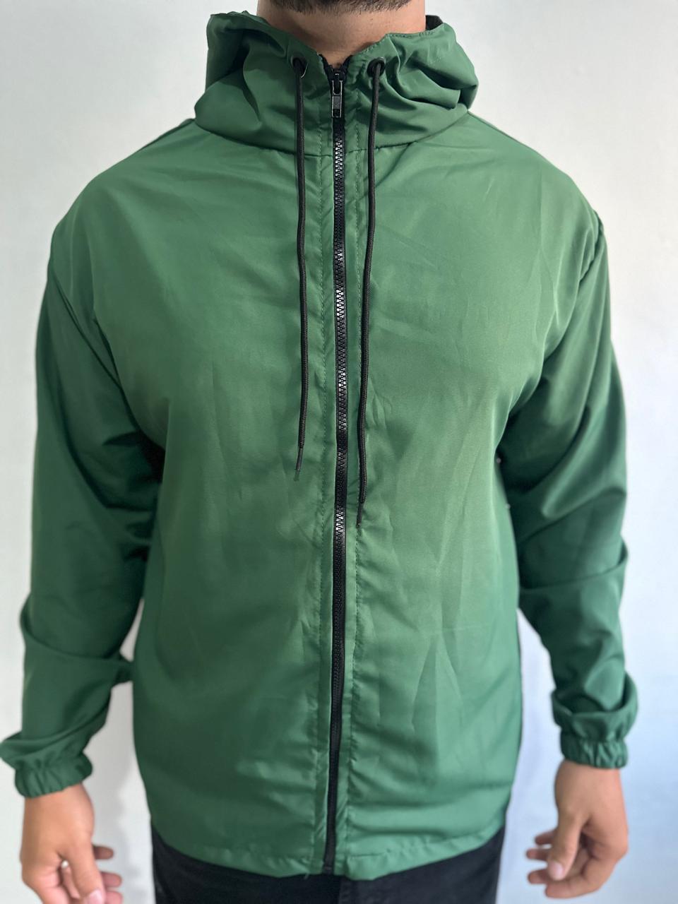 Corta vento semi forrado com capuz e bolso (unissex) liso. premium