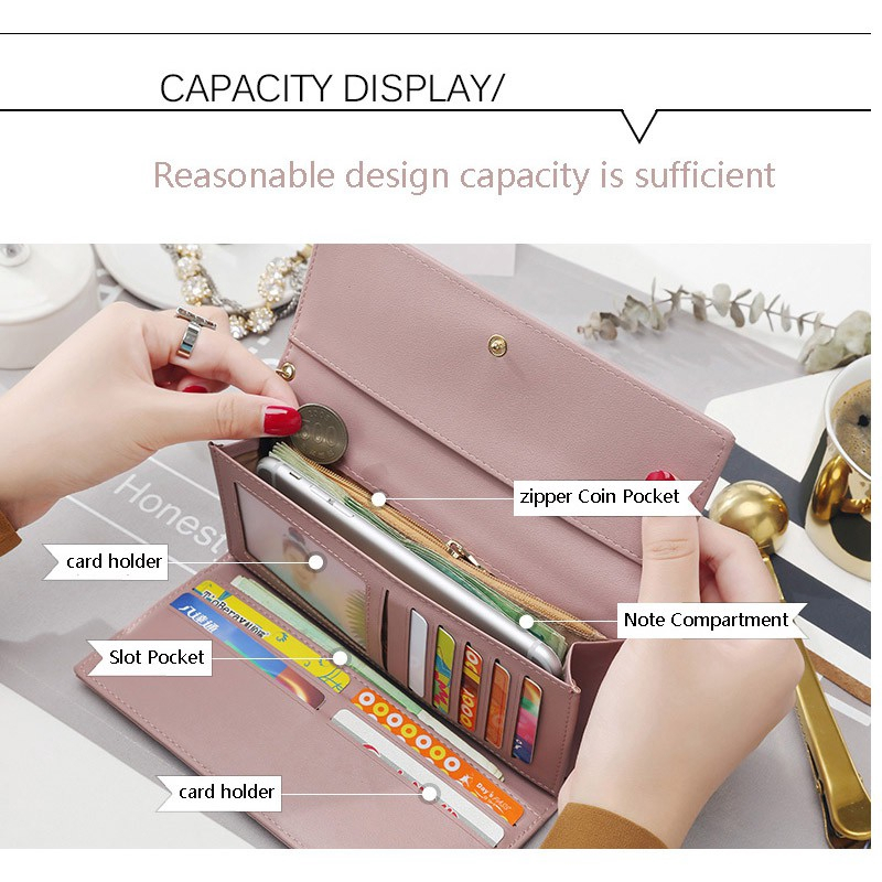 Carteira Comprida Multiuso Feminina / Porta-Cartão com Fivela / Bolsa Fashion para Mulheres D001 VT