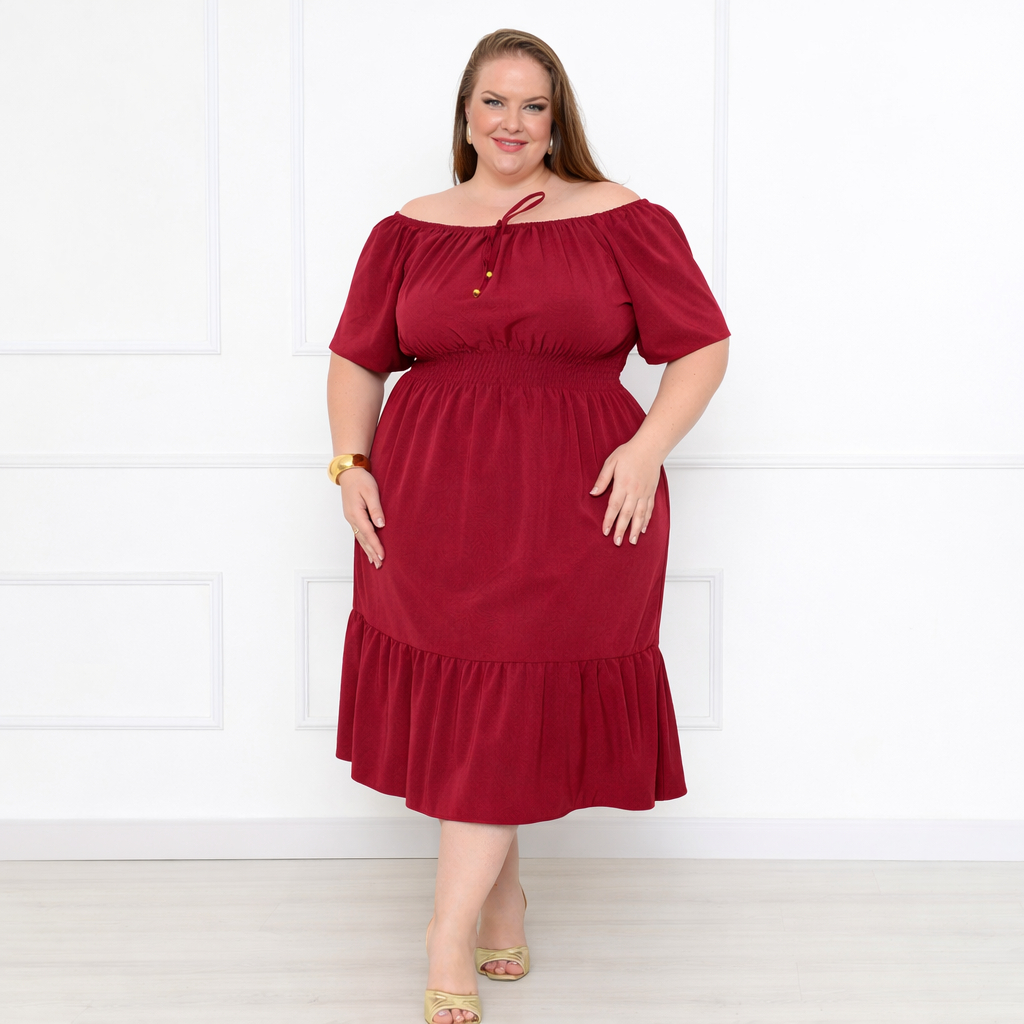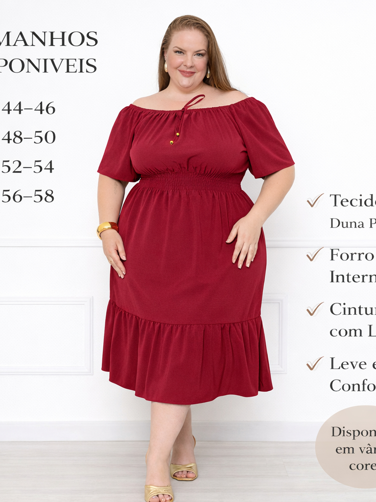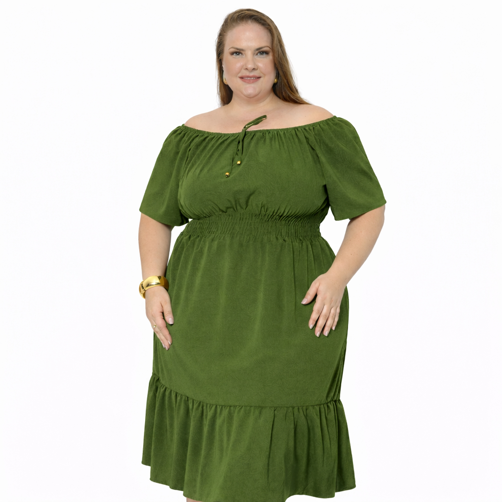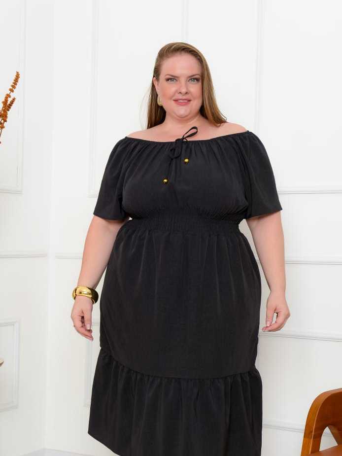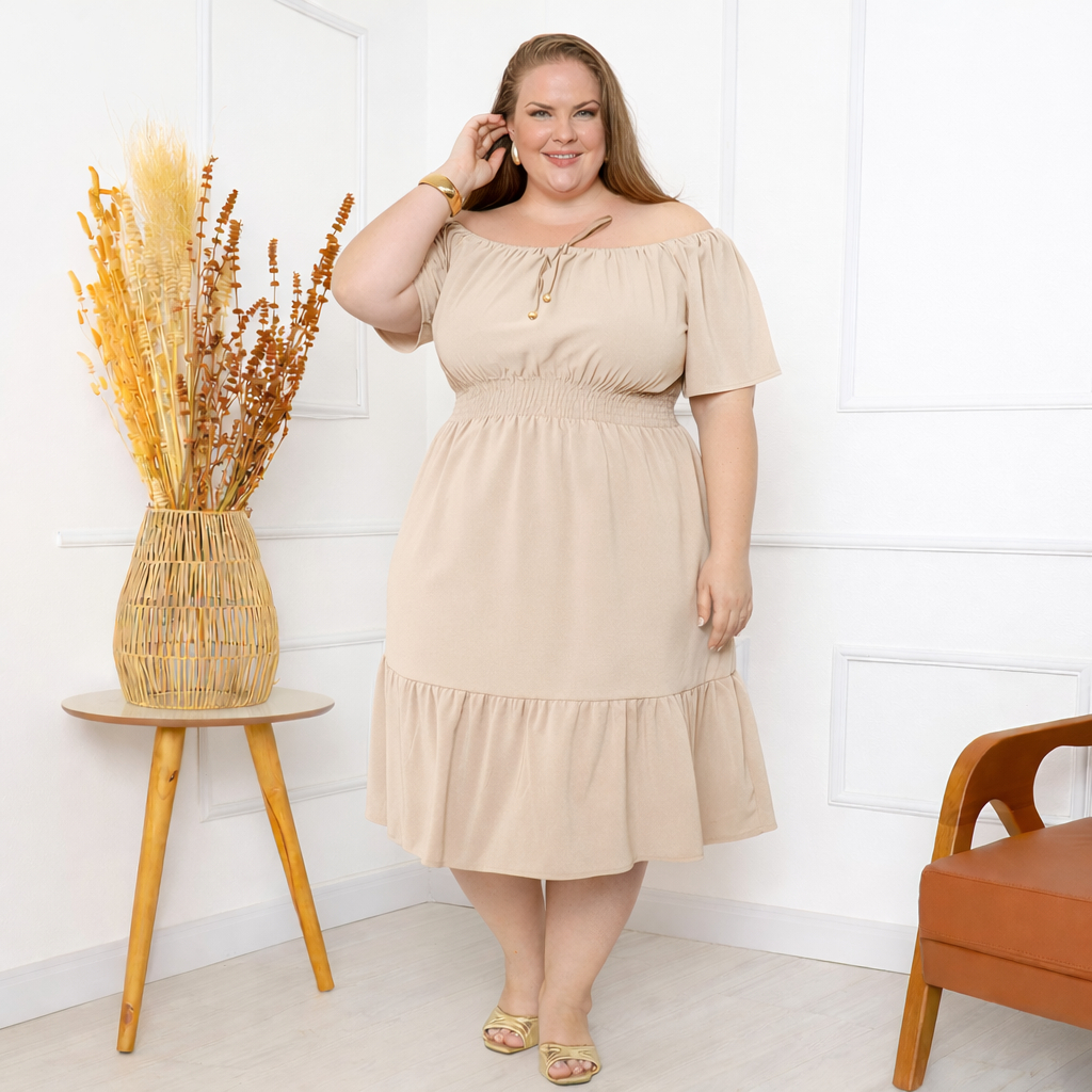 Vestido Ciganinha Plus Size Ombro a Ombro Duna Premium com Forro e Lastex na Cintura G1 ao G4