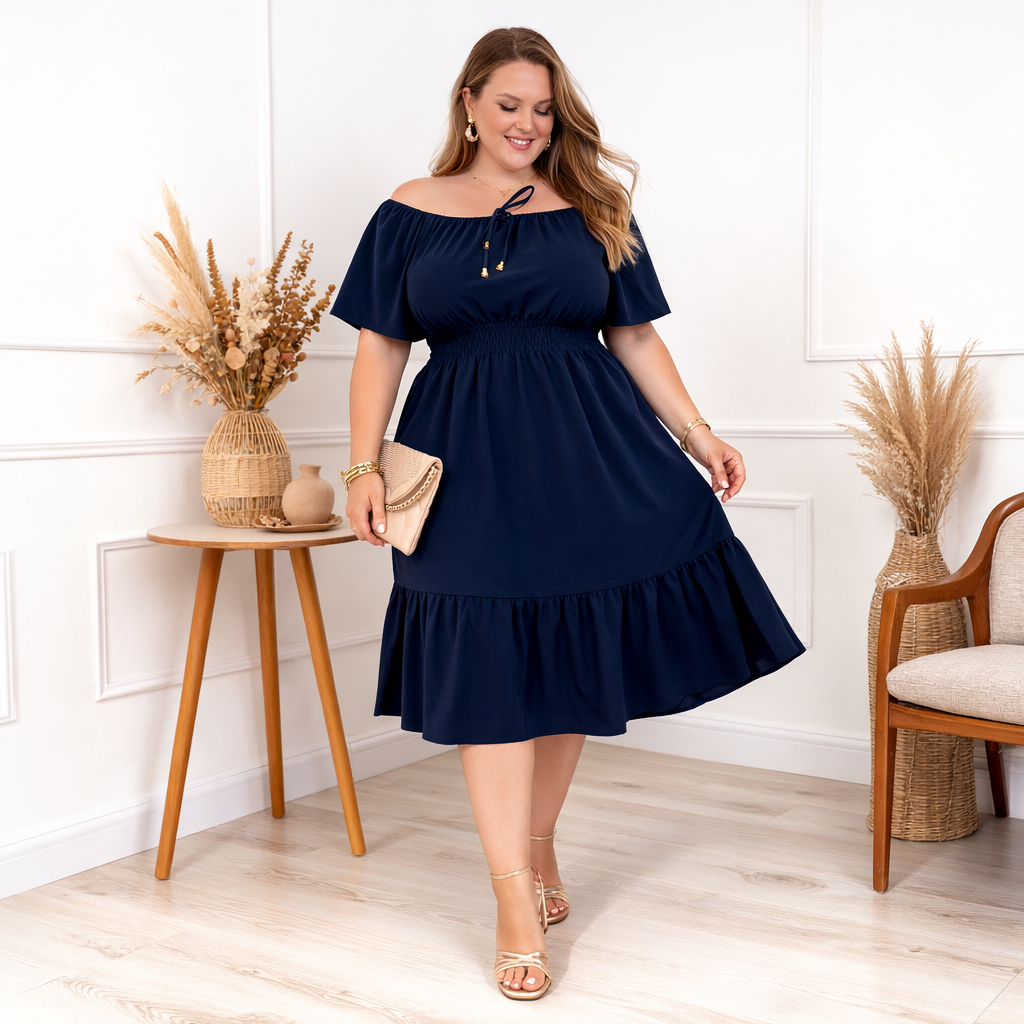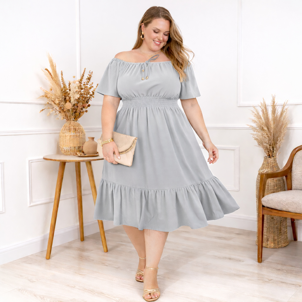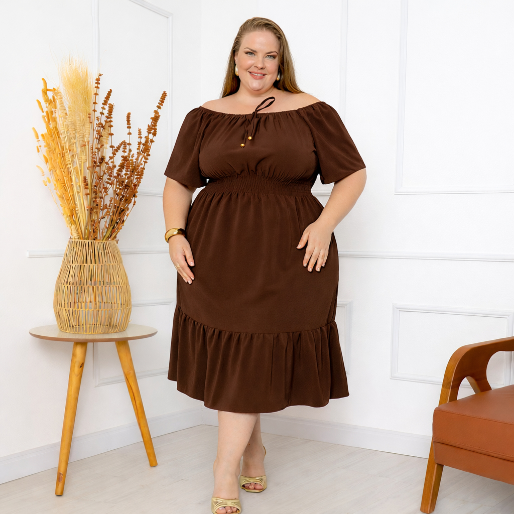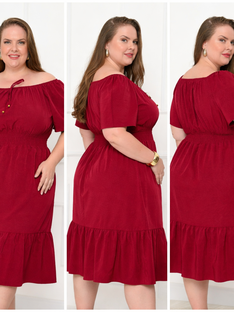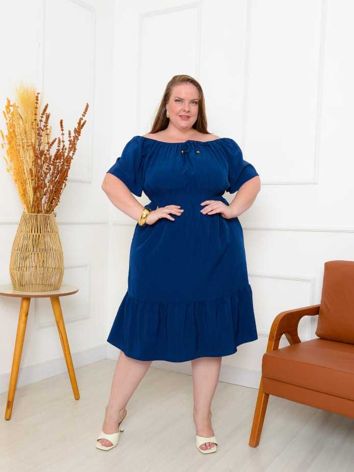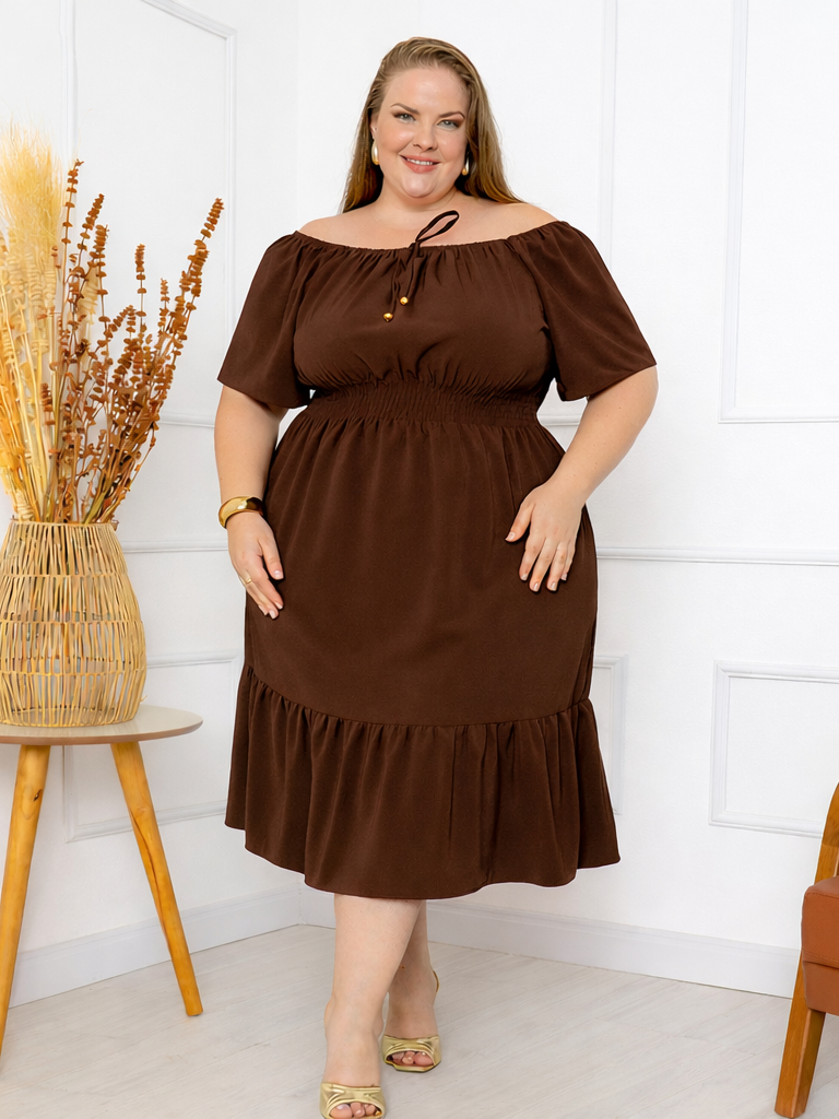 Vestido Ciganinha Plus Size Ombro a Ombro Duna Premium com Forro e Lastex na Cintura G1 ao G4