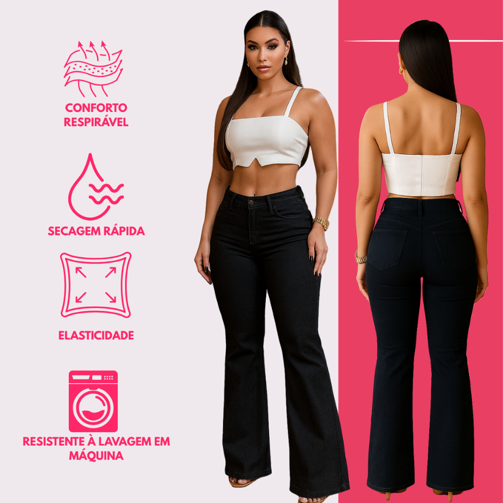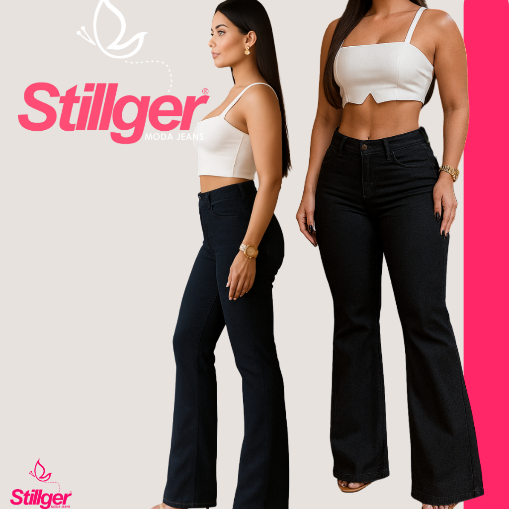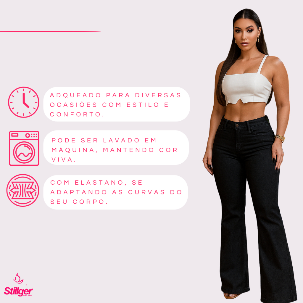 Calça Jeans Feminina Flare Pantalona Cintura Alta Boca Sino Com Lycra Stillger Jeans