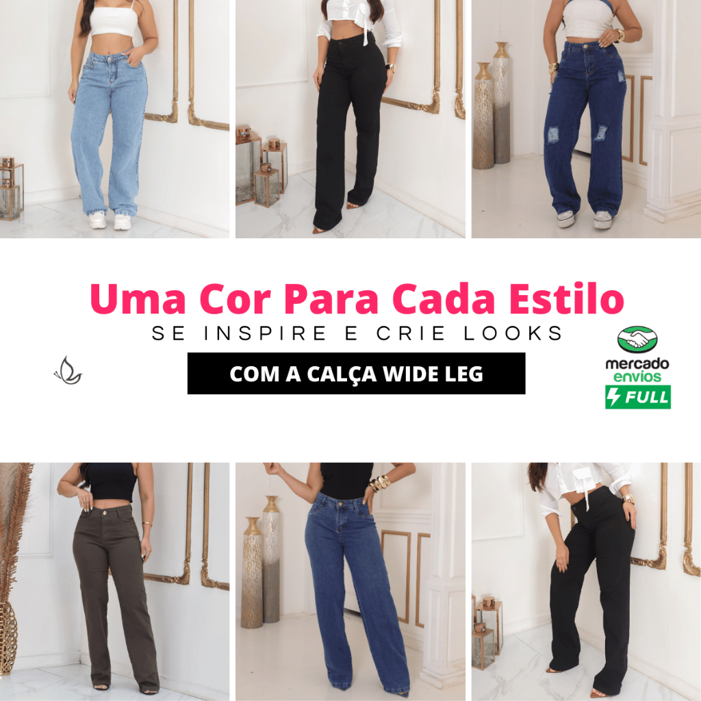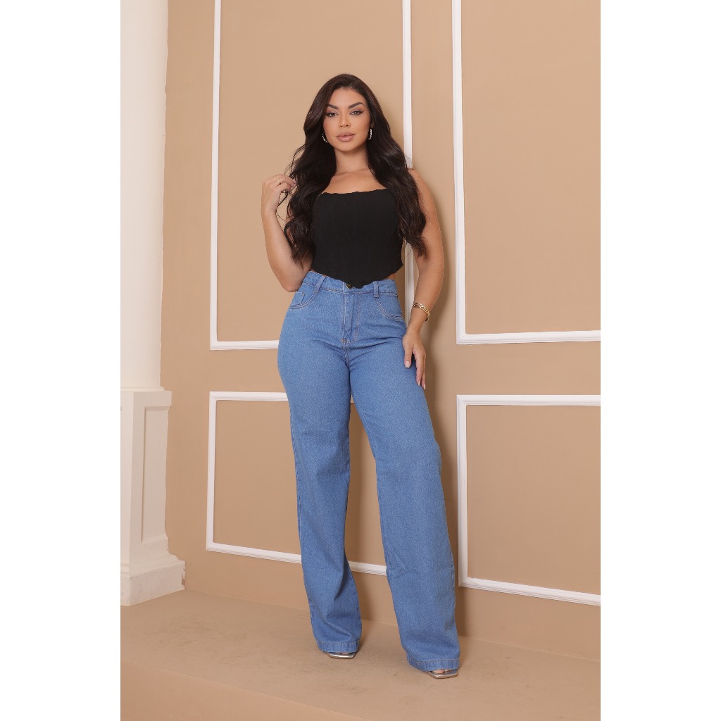 Calça Wide Leg Feminina Jeans Pantalona Cintura Alta Premium Stillger