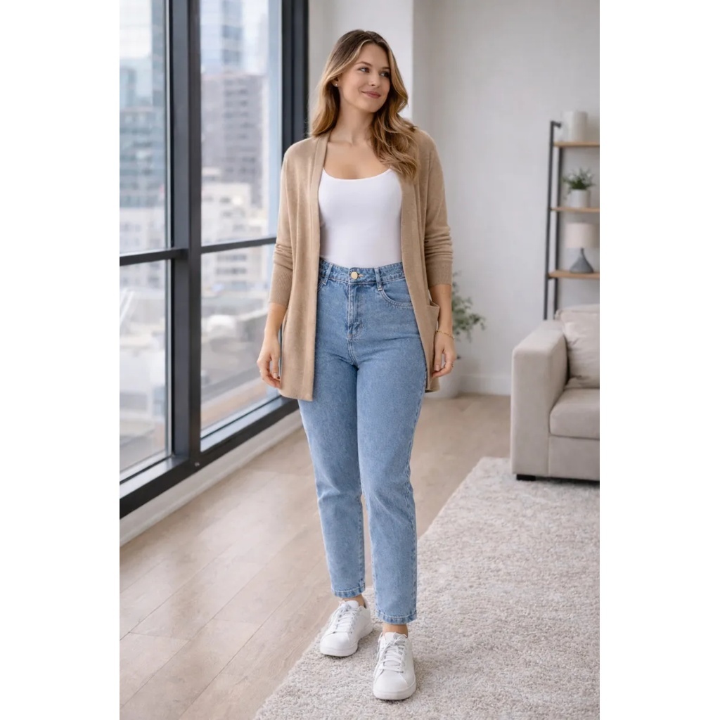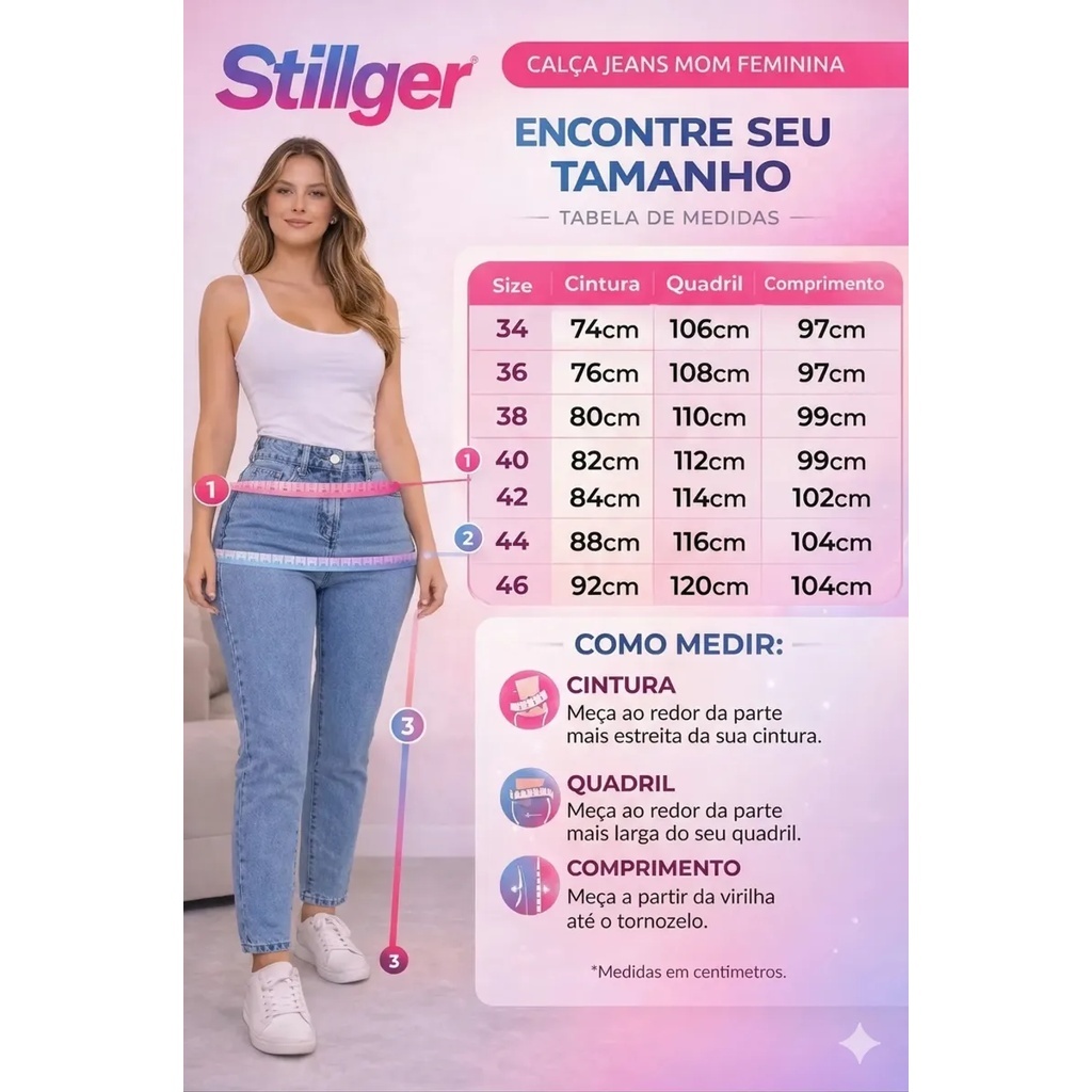 Calça Mom Jeans Cintura Alta Feminina Levanta Bumbum Stillger Jeans Sem Lycra Vintage Retrô Algodão Modeladora