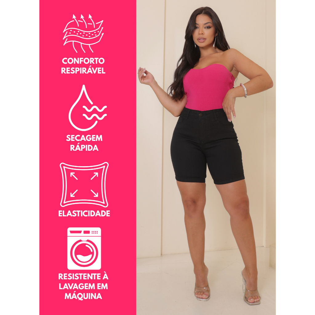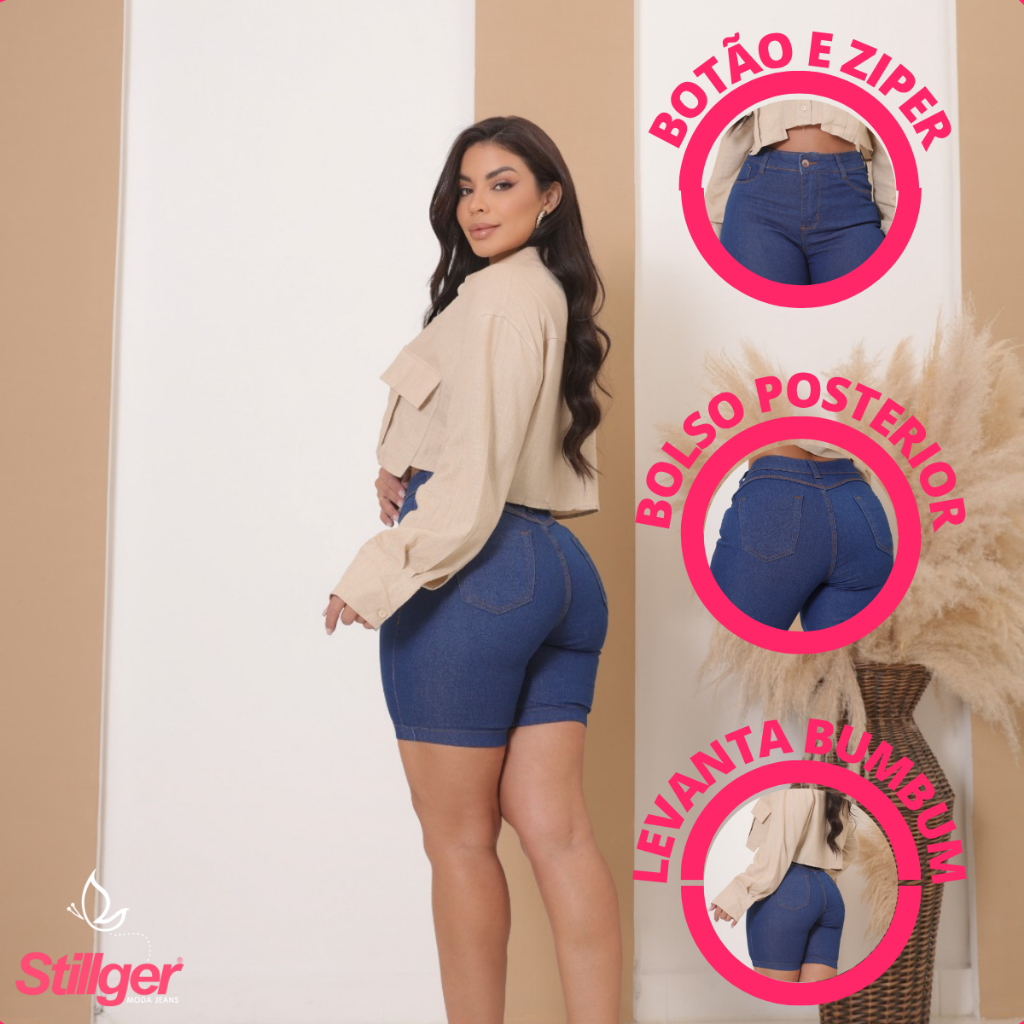 Kit 3 Bermudas Jeans Feminina Cintura Alta Com Lycra