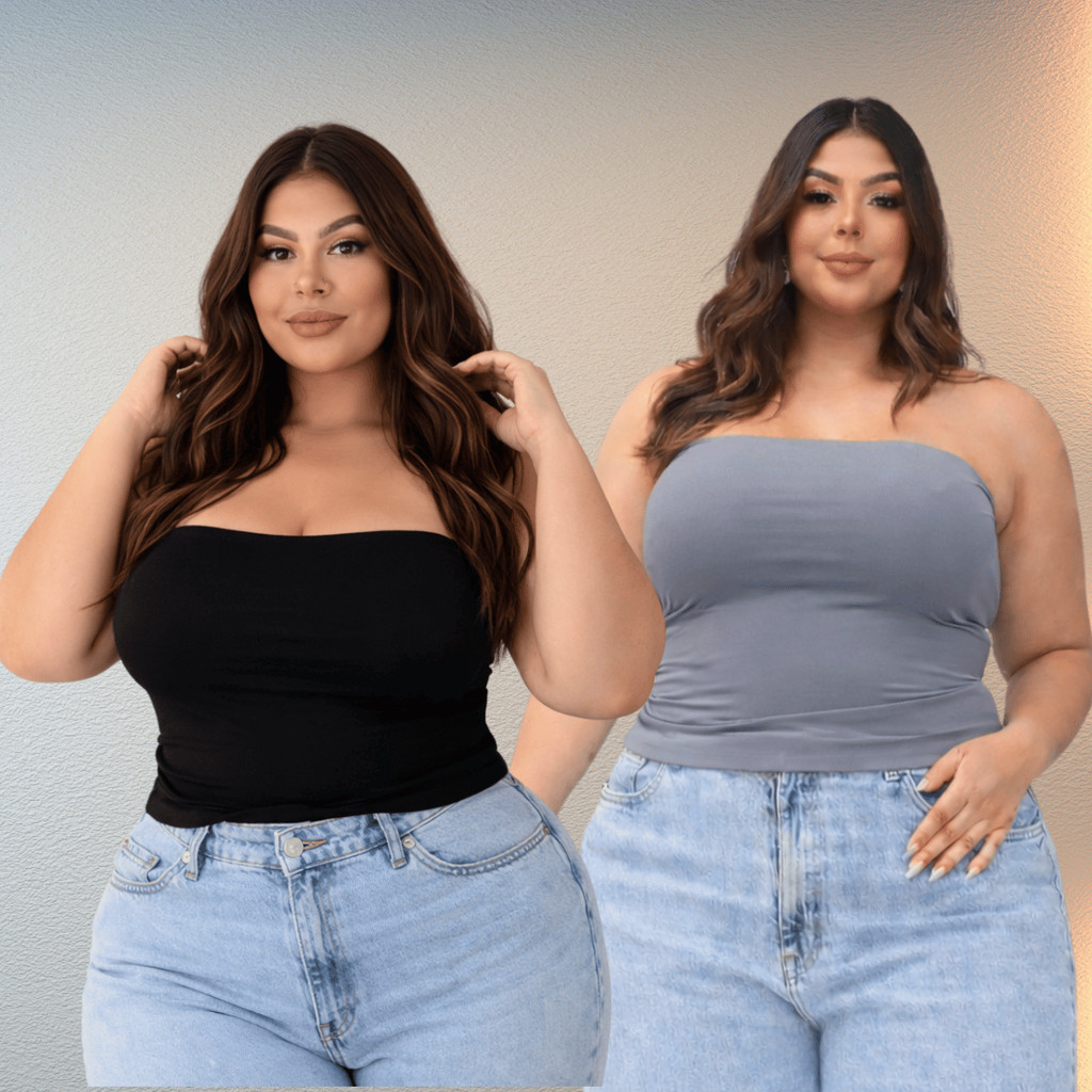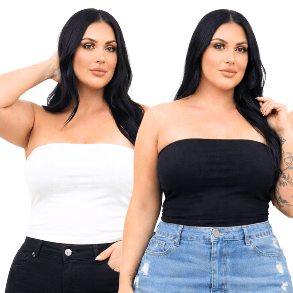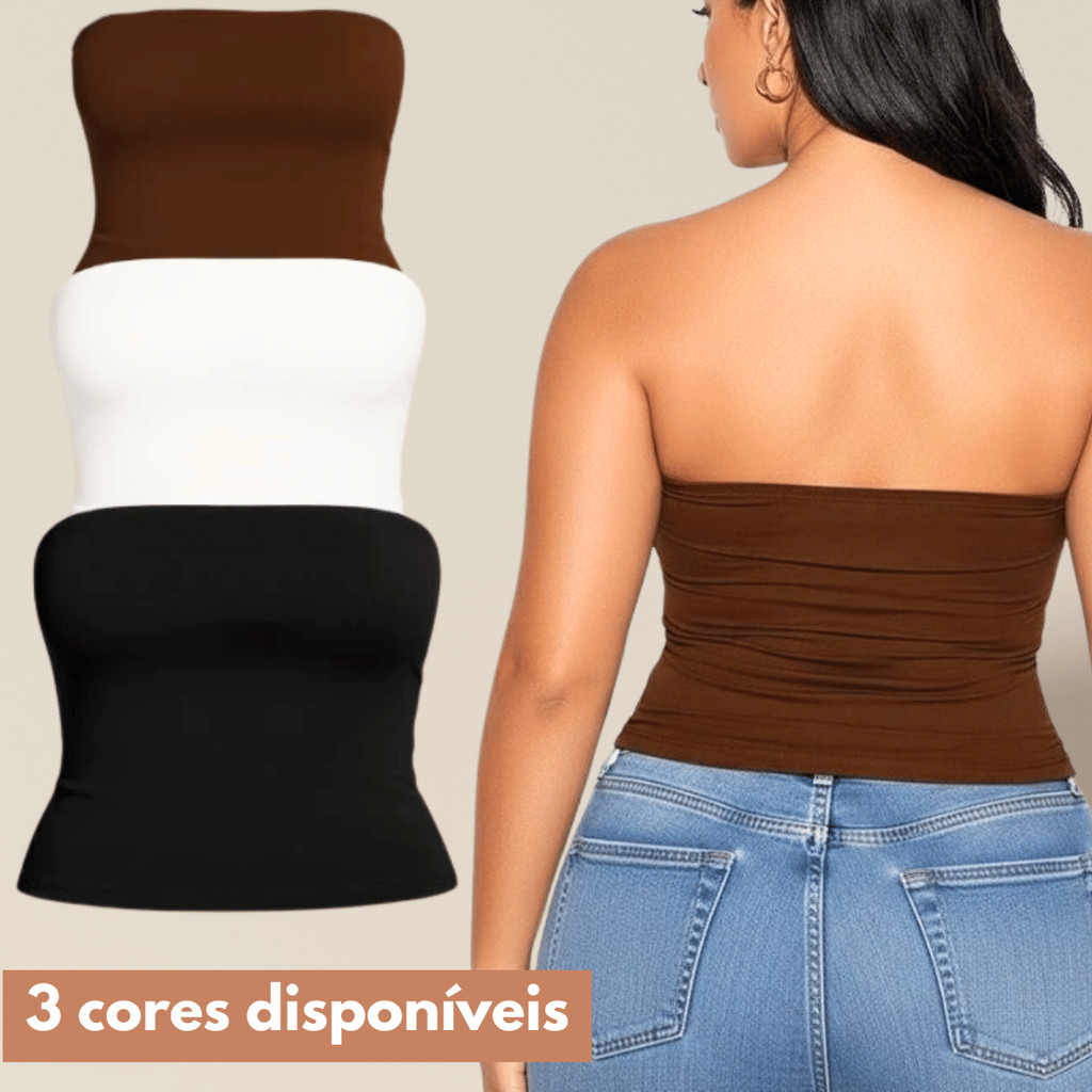 Cropped Tomara Que Caia Plus Size Top Tube Forrado Básico Tecido Suplex Premium - Bege