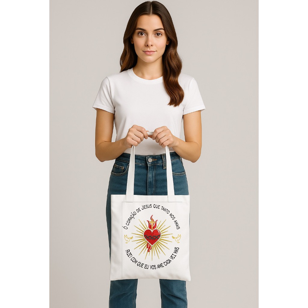 Bolsa sacola Ecobag feminina,unissex SACRATISSIMO CORAÇÃO DE JESUS,moda cristã,católica,casual,verão