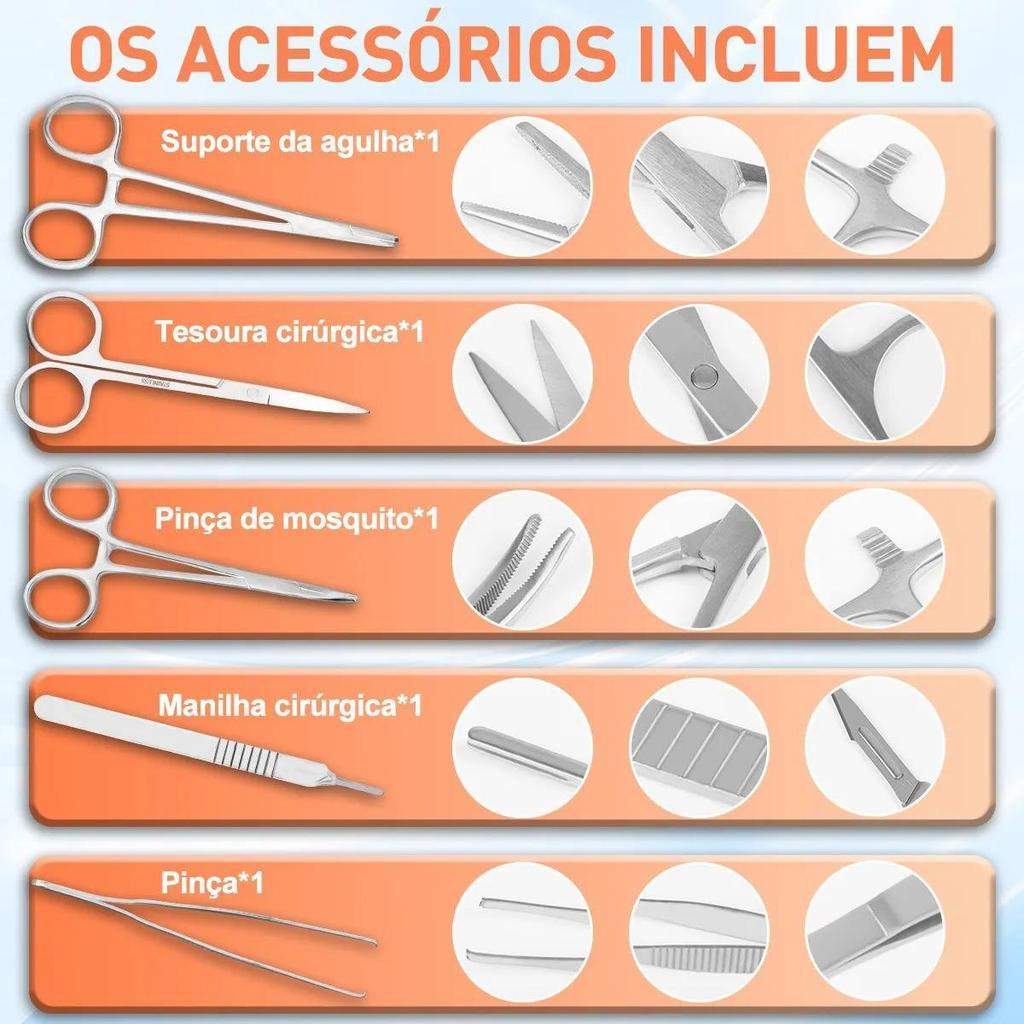 Kit com 25 Pecas Simulador De Sutura Treino Com Pinça Pinca Realístico Veterinaria Treinamento