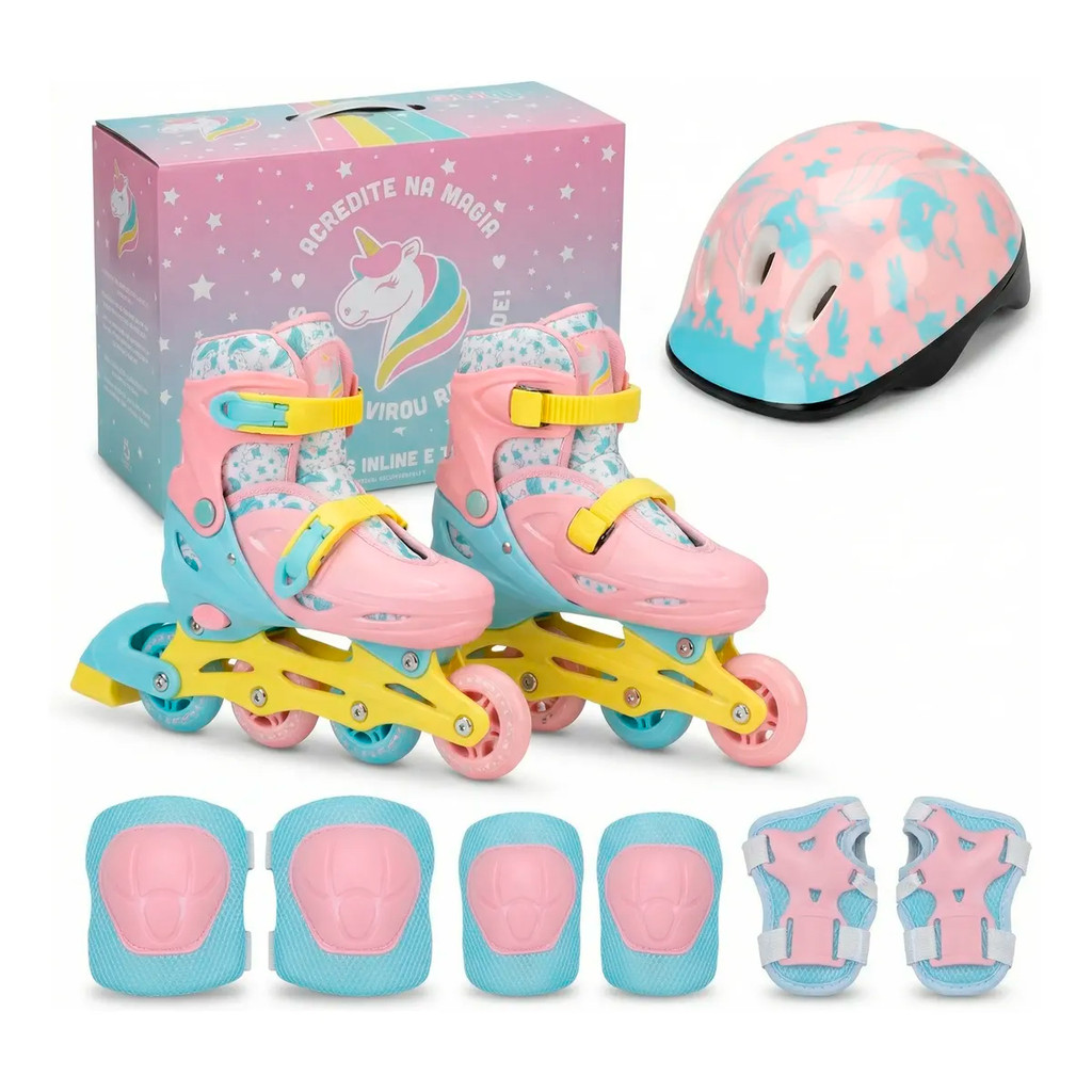 Patins Infantil 2 Em 1 Ajustável Inline Trilne Kit Proteção 32 A 35 60 Mm Lilas E Coral