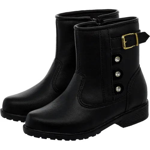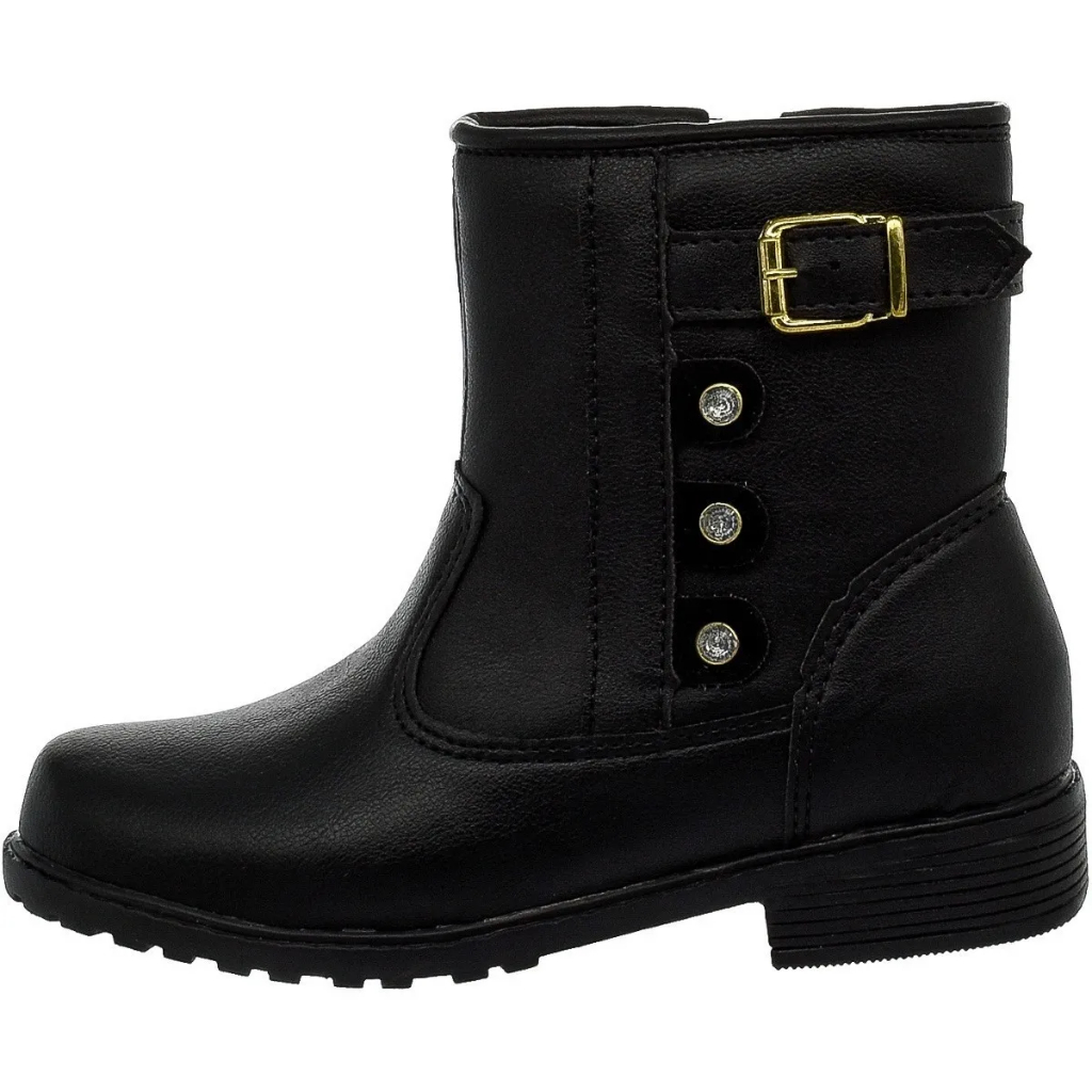 Botinha Coturno Infantil Saltinho Baixo Zíper e Fivela Dourada