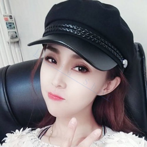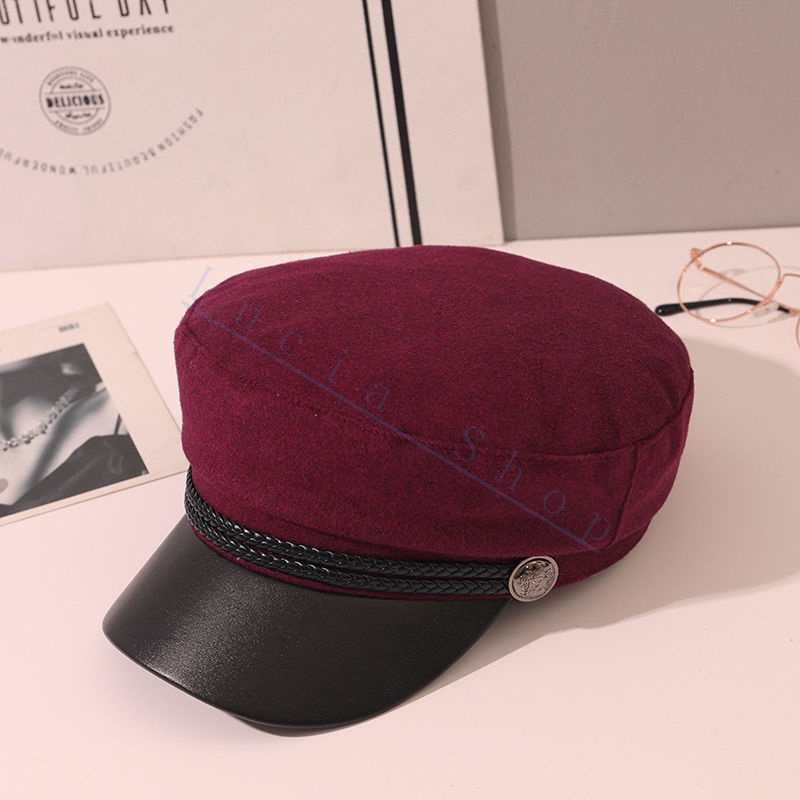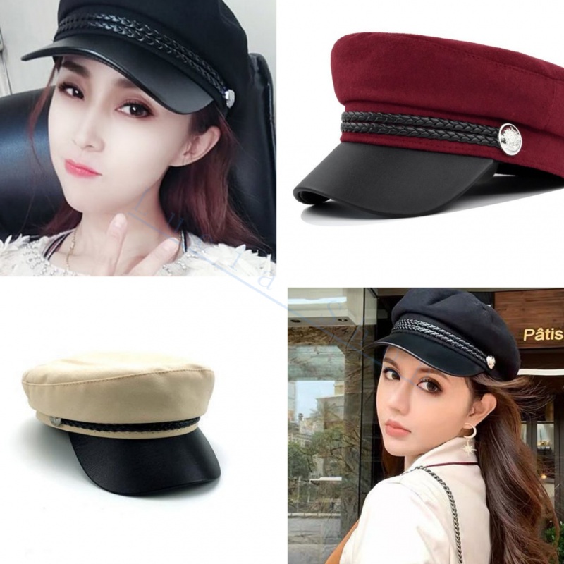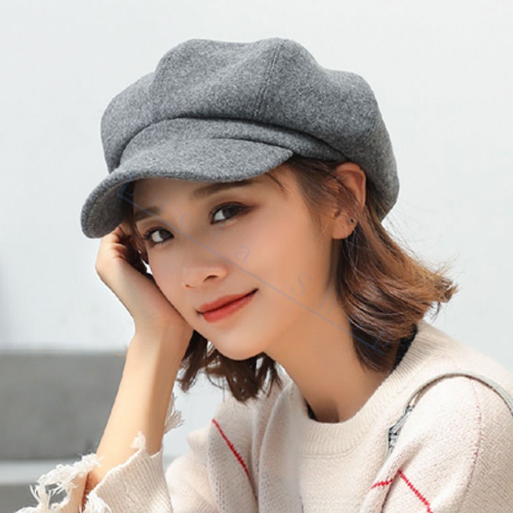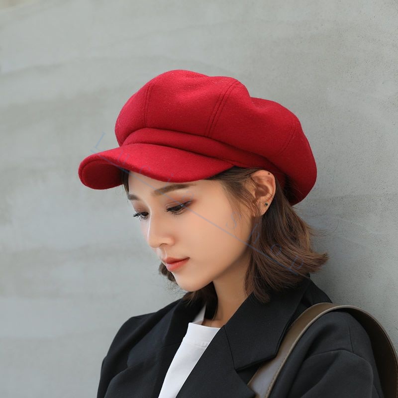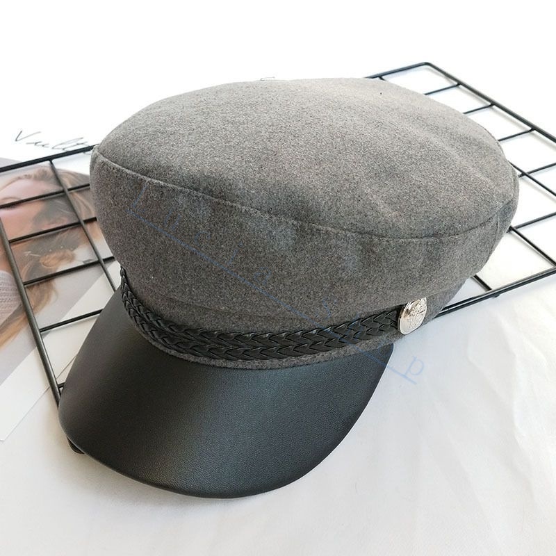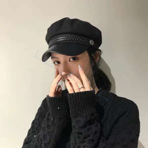 Boina Feminina De Couro De Algodão Primavera Outono Inverno Versão Coreana Moda Britânica Vintage Letra Octogonal