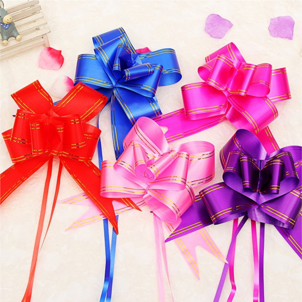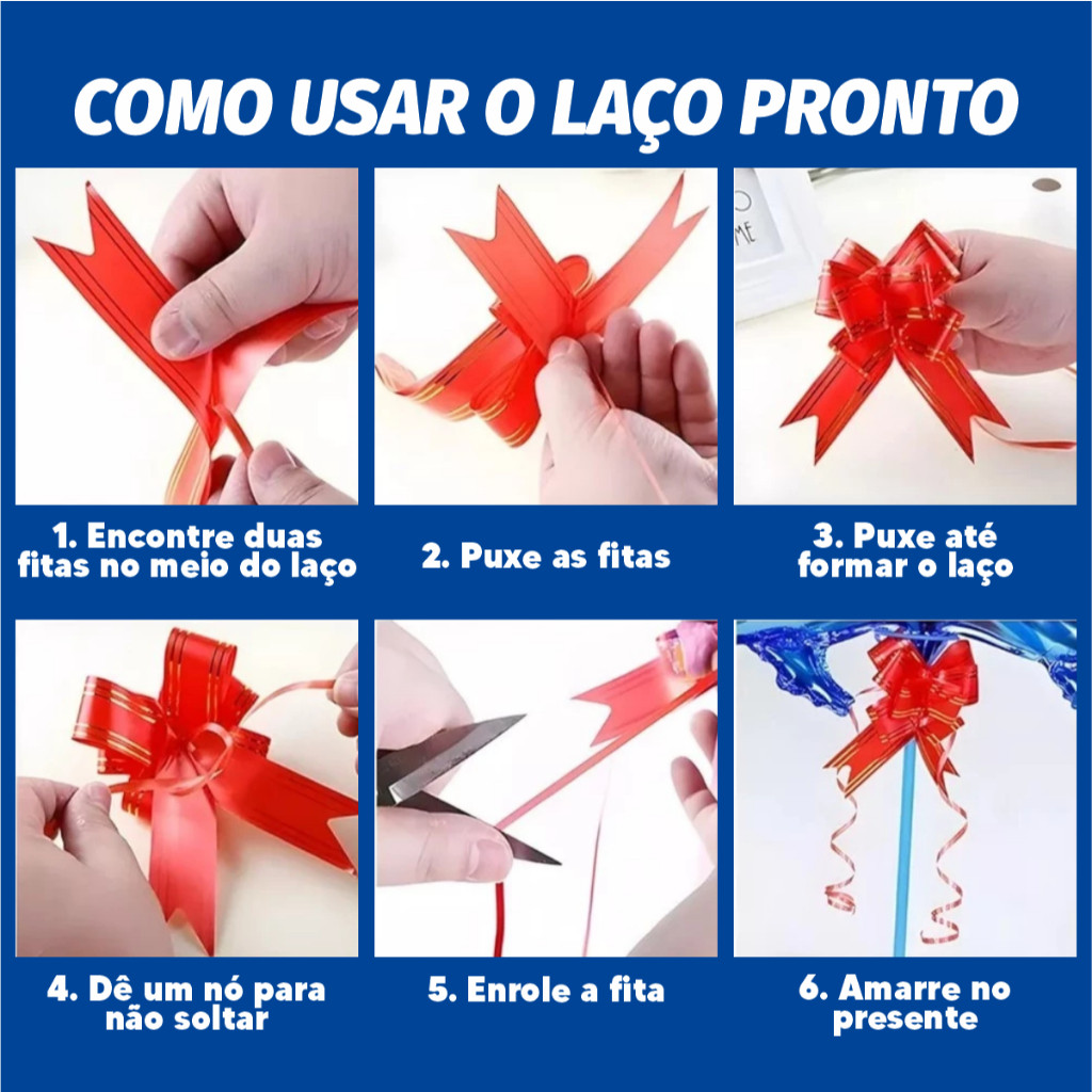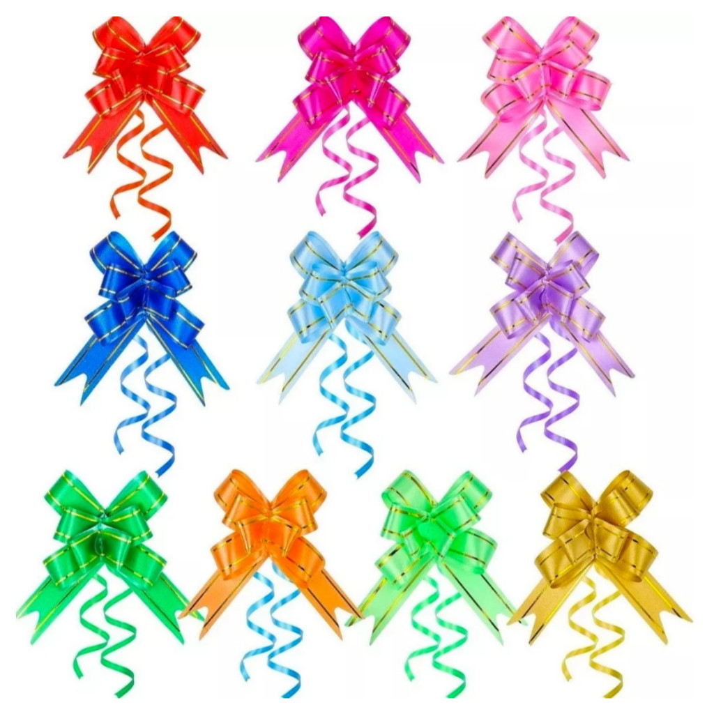 Kit 50 Laços Mágicos Fácil Para Presente Com Filete Dourado P/M/G Cores Sortida