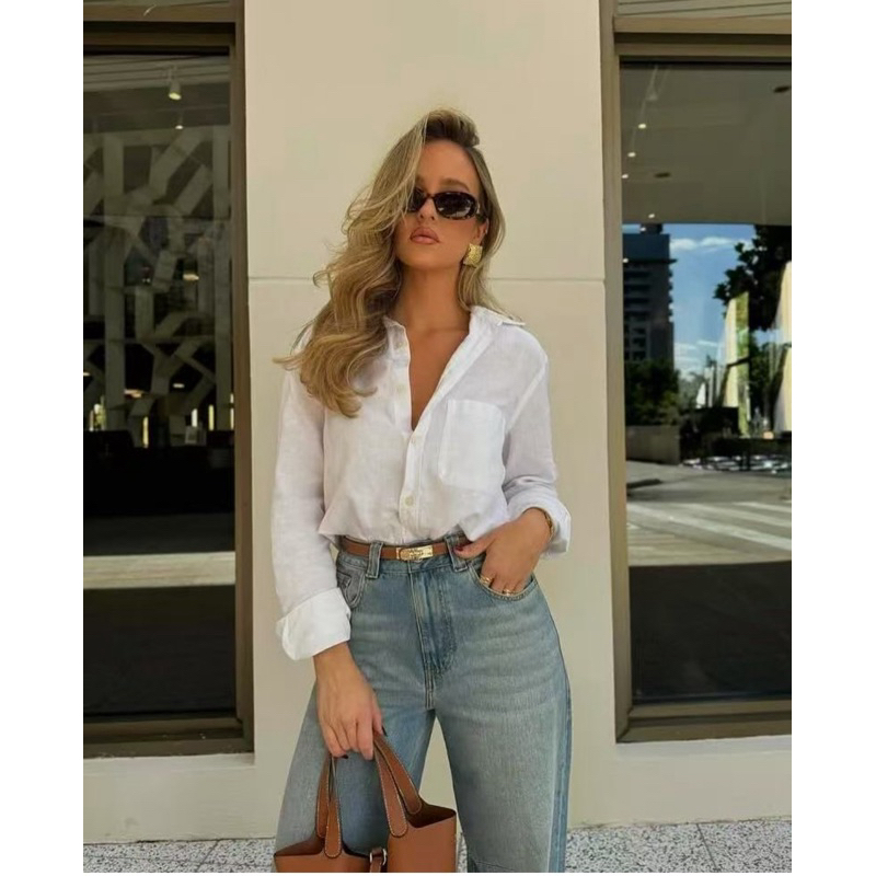 Max camisa feminina de linho importado