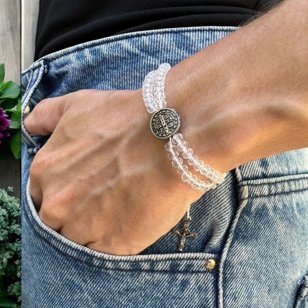 Terço de Pulso Cristal São Bento Diversas Cores Pulseira Novidade