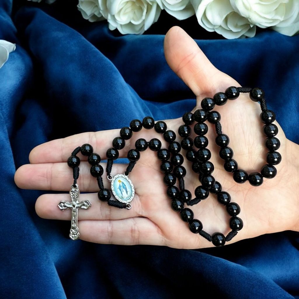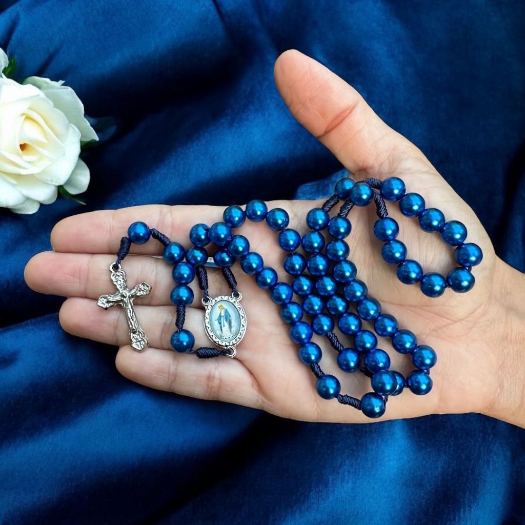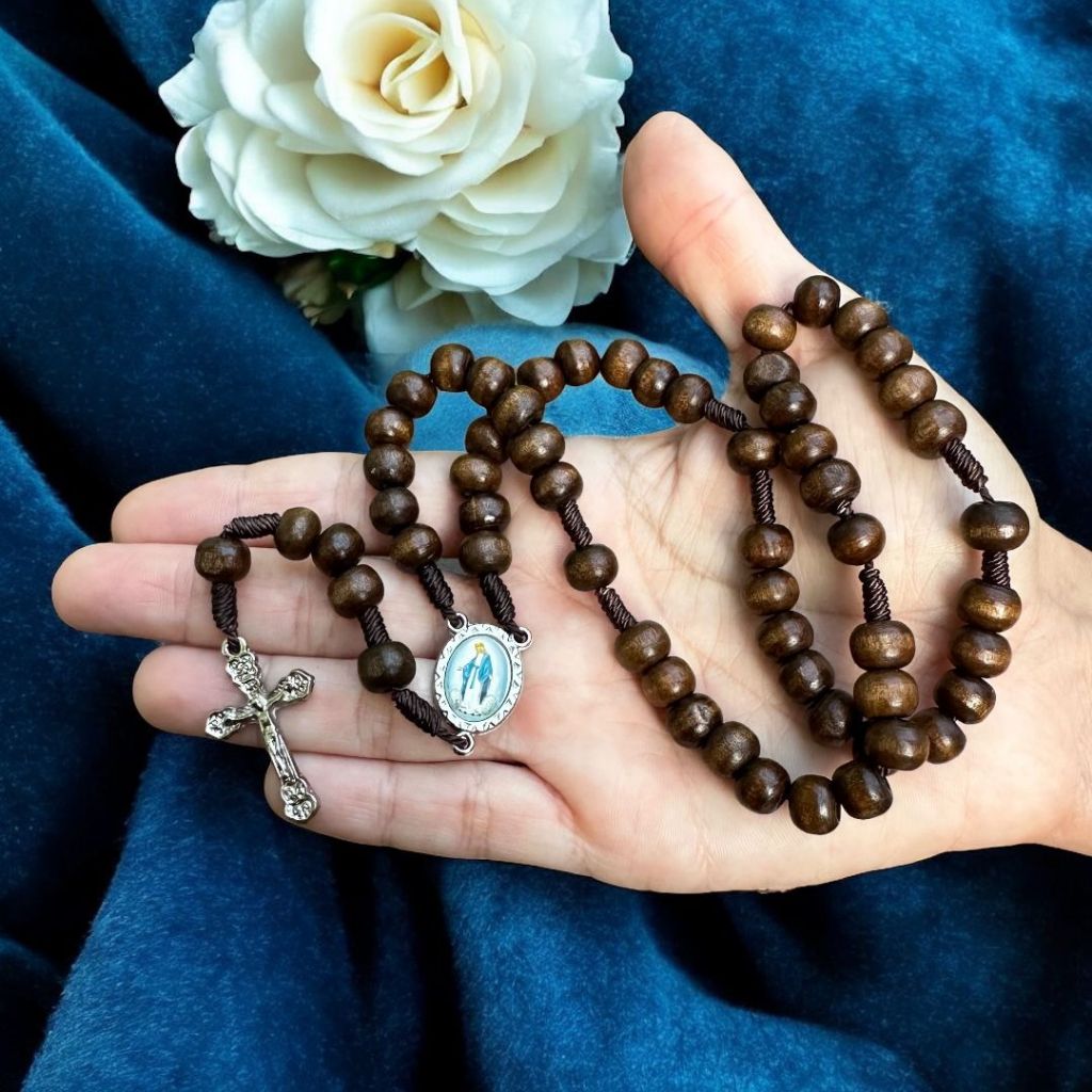 Terço Pérola Madeira de NOSSA SENHORA DAS GRAÇAS Medalha Resinada