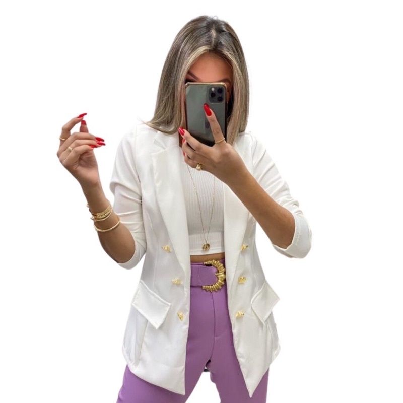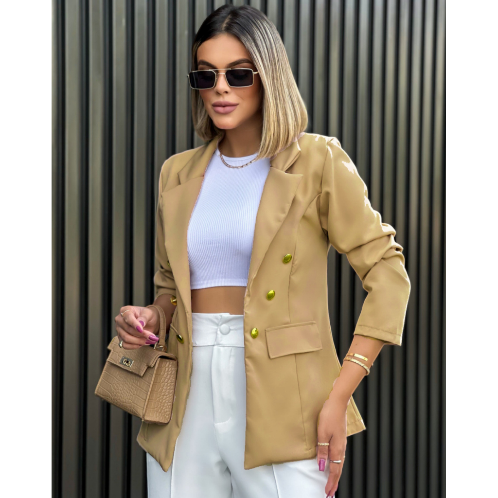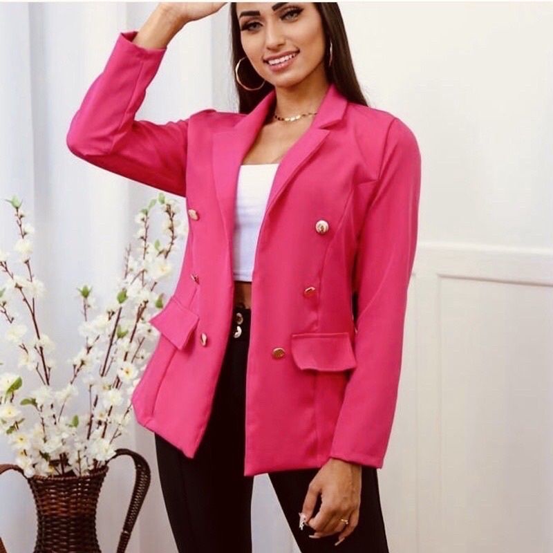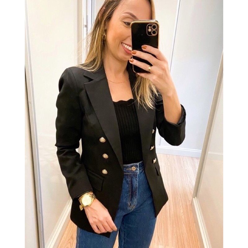 Blazer Feminino Casaquinho Maxi Longo Sobretudo Alfaiataria Social Blazer Com Botão