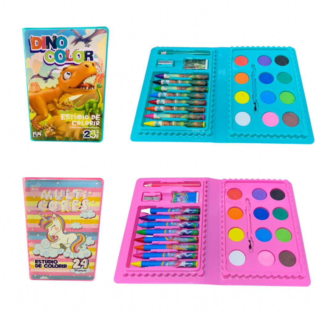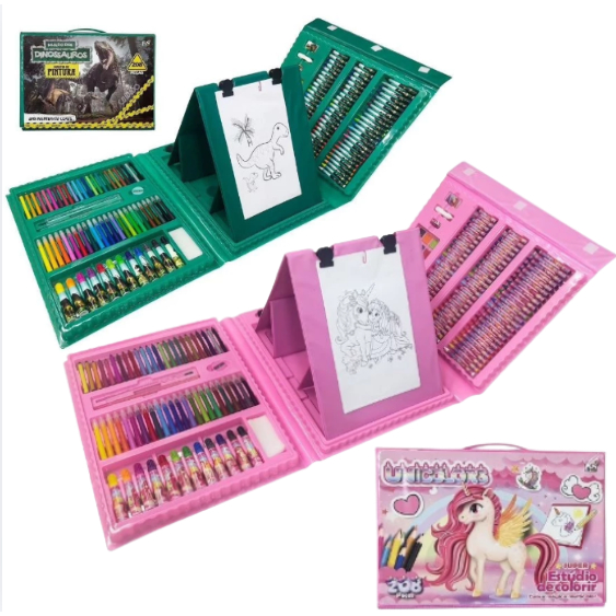 Estojo Maleta Pintura Infantil Escolar Lápis Giz Canetinha e Desenhos Para Colorir Envio Rápido