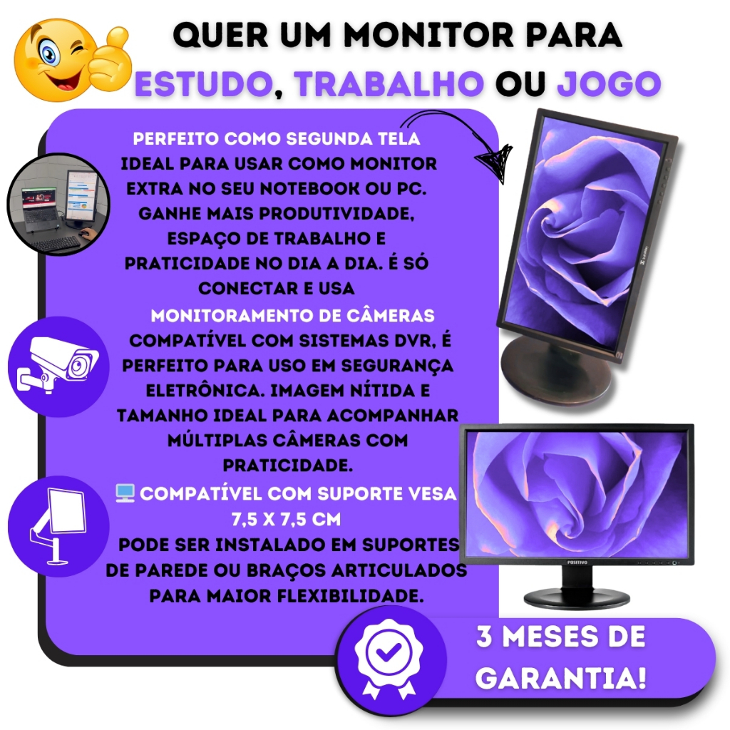Monitor Giratório Ajustável HDMI 19 Polegadas Prefeito Segunda Escritório Trabalho Led Positivo/info