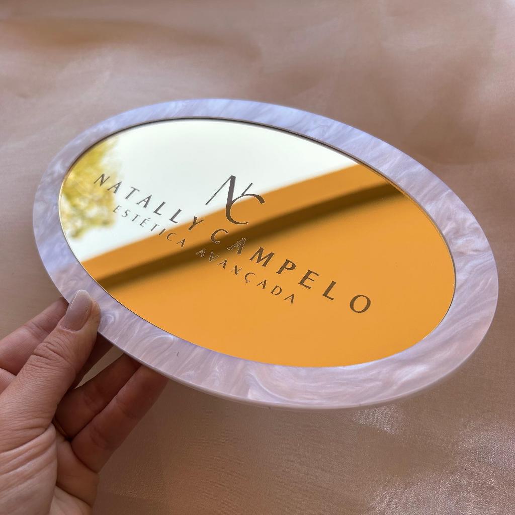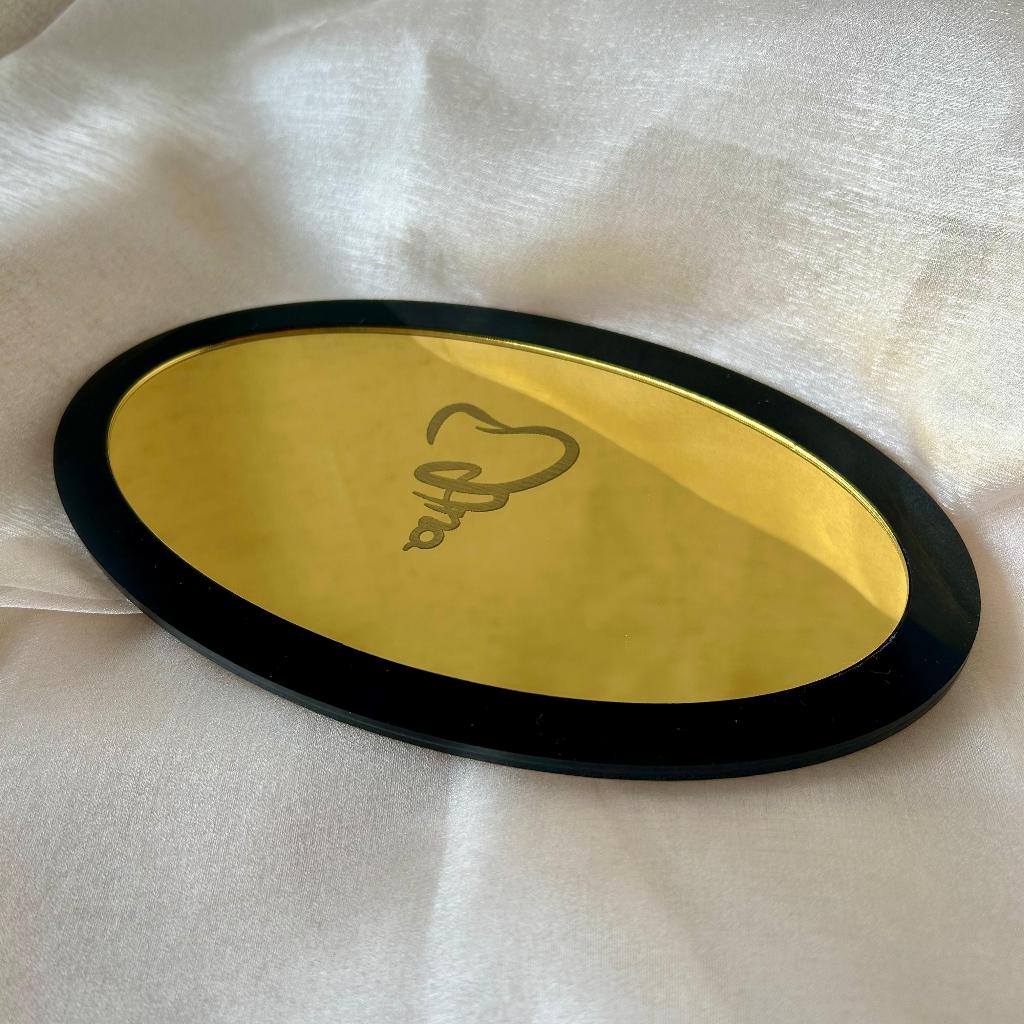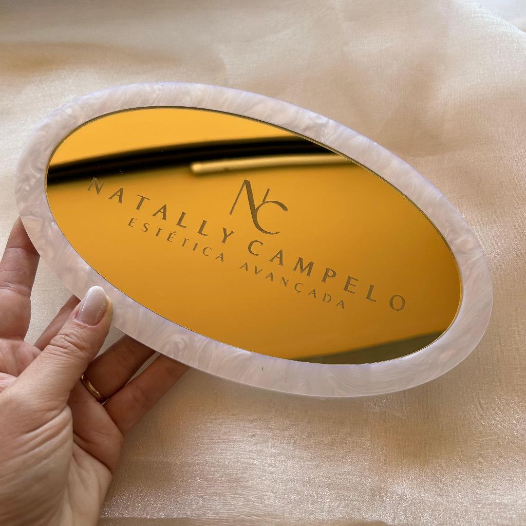 Bandeja para apoio OVAL ESPELHADA personalizada consultório clínica estúdio beleza