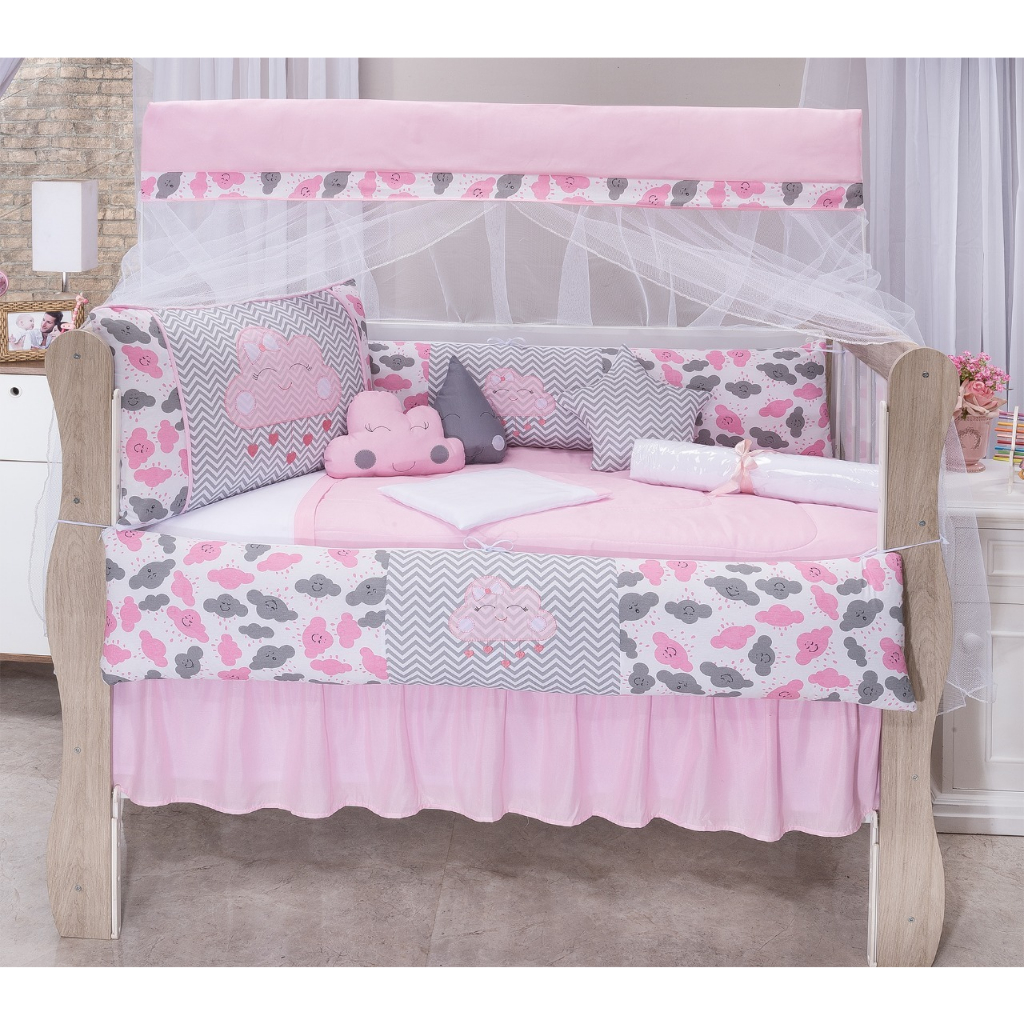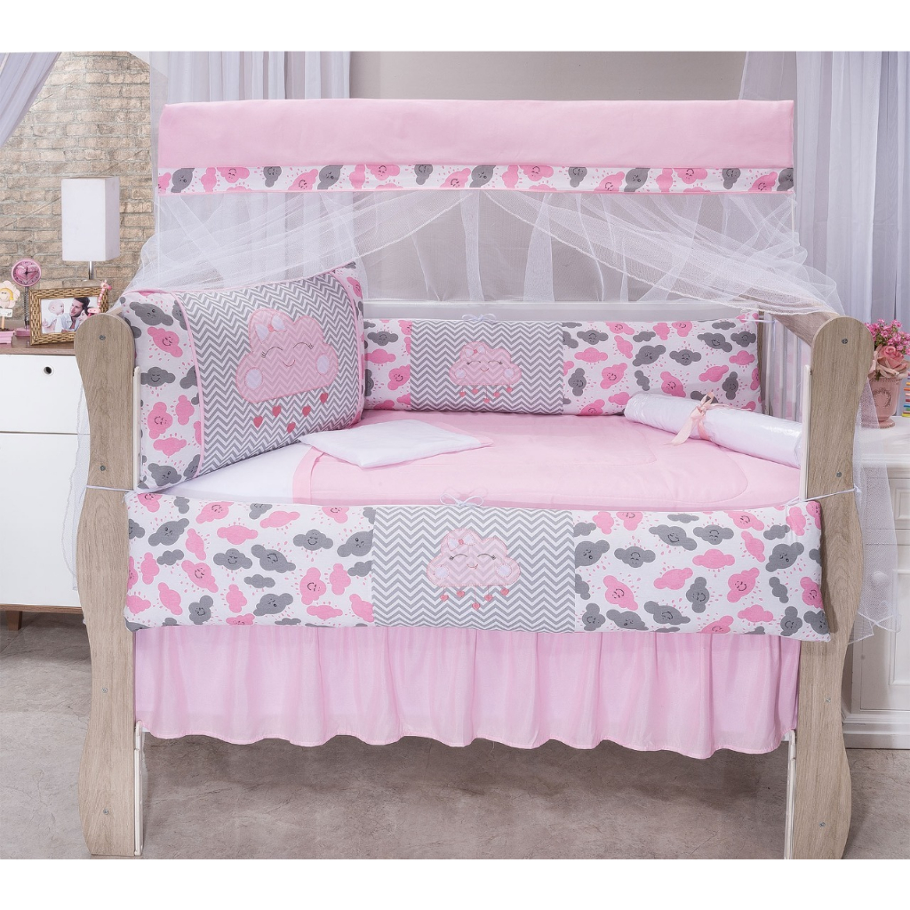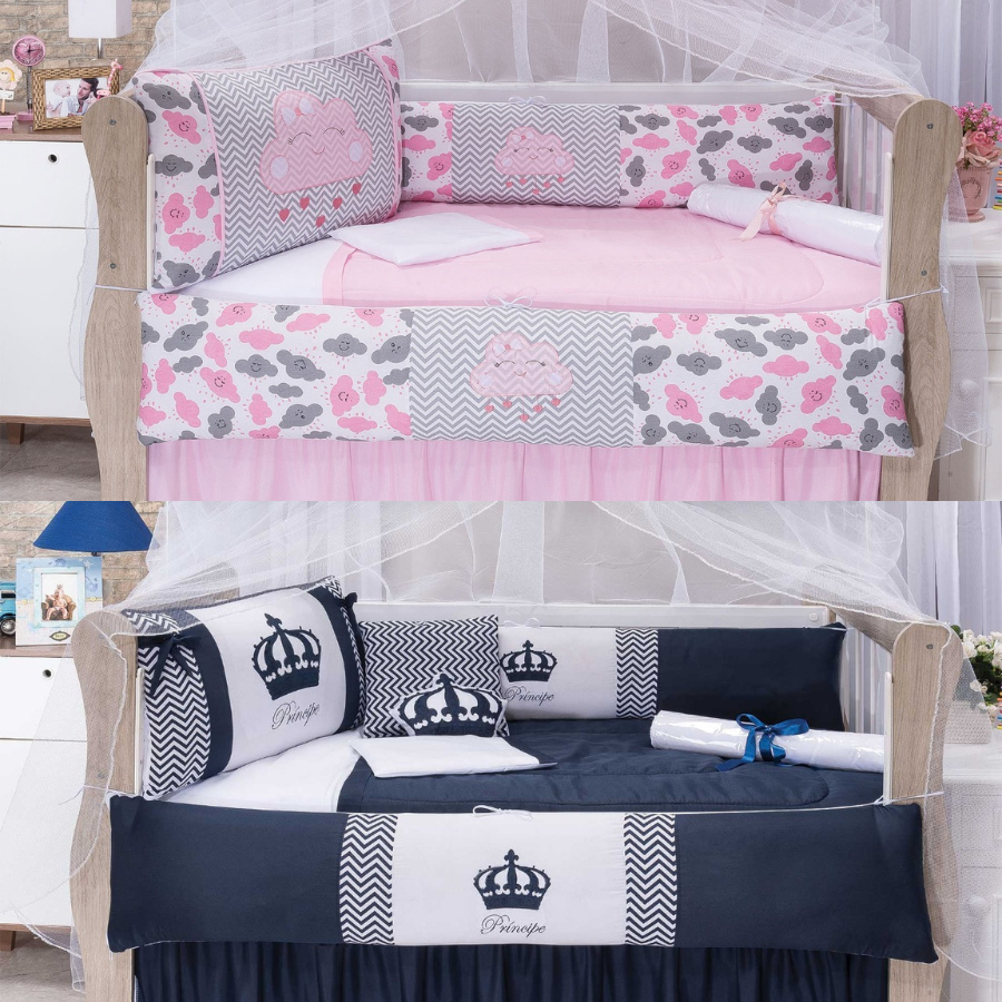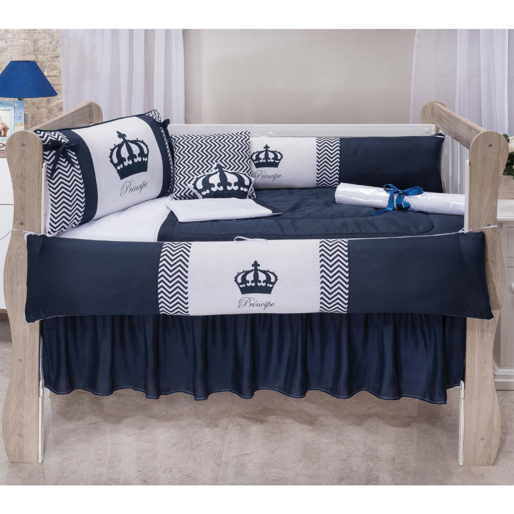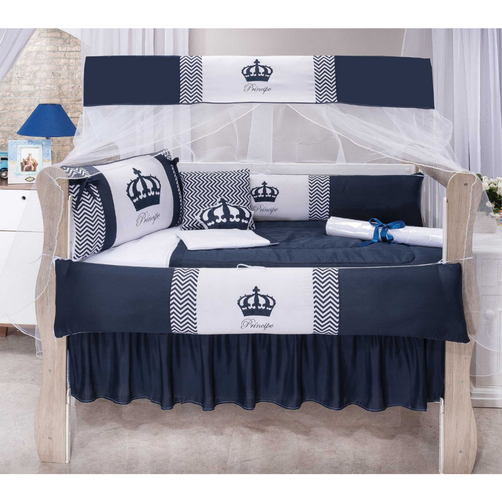 Kit De Berço Para Bebe 12/13 Peças Bordado Coroa Nuvem Menino Menina