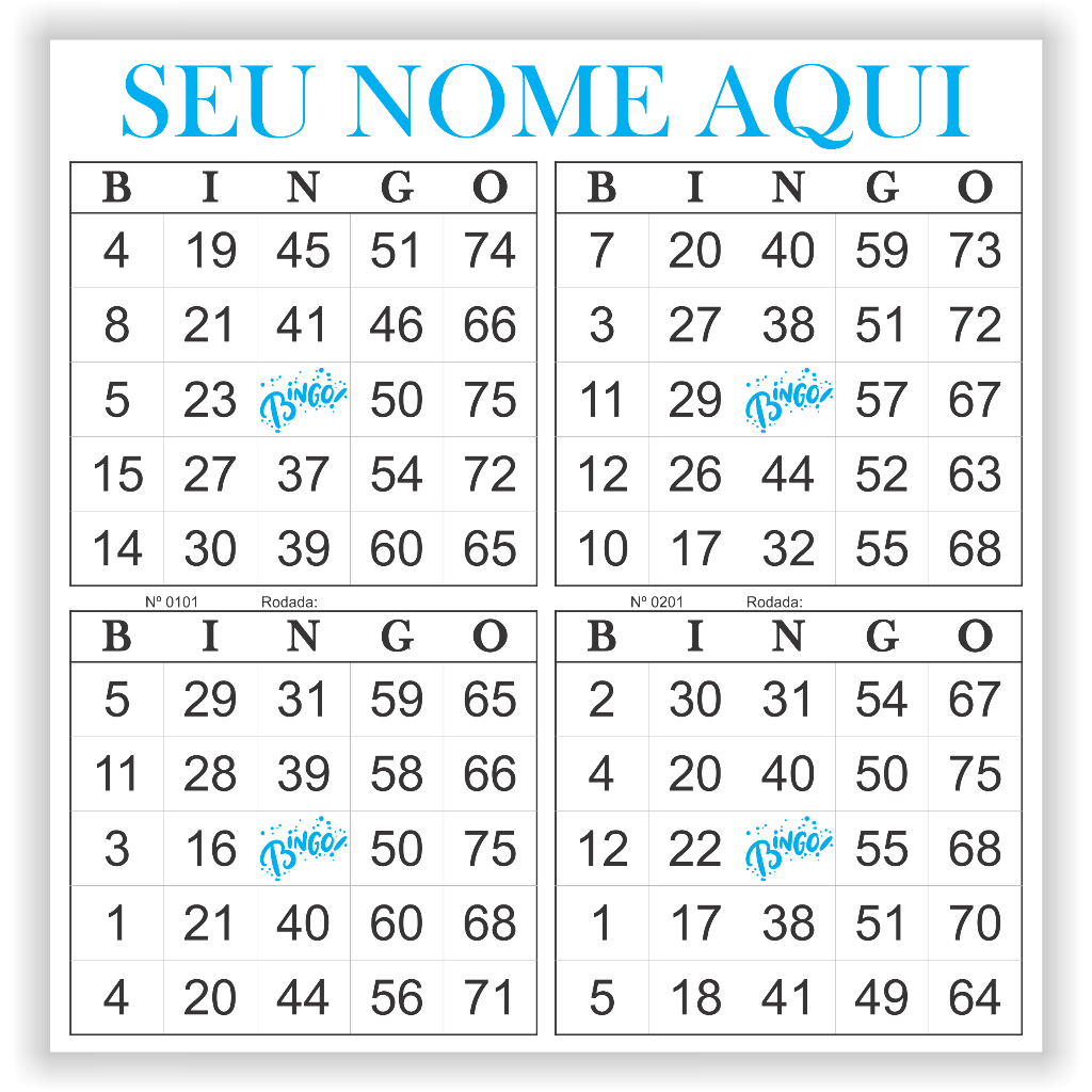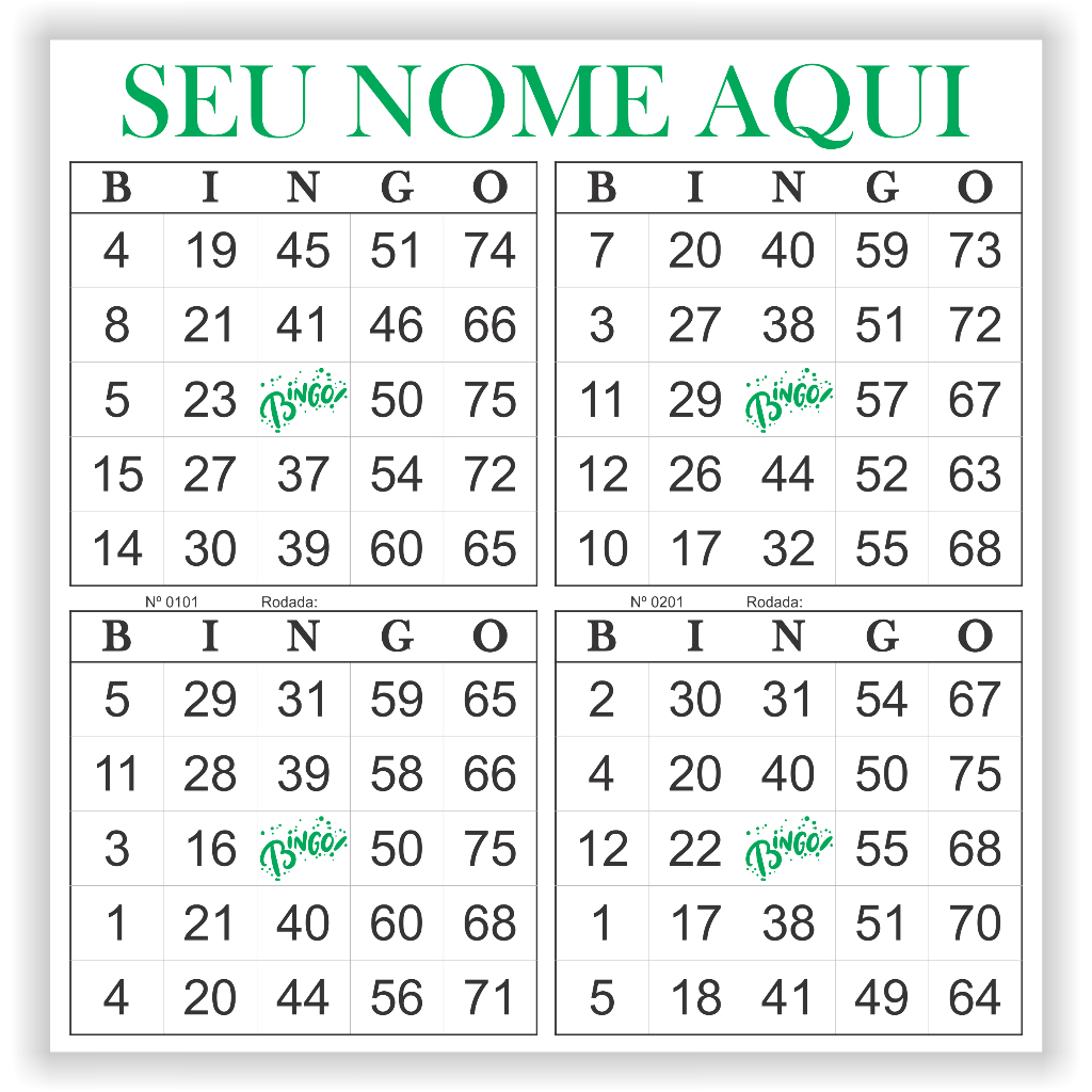 Cartela de Bingo Personalizada (1 Bloco modelo 4x1 com 100 folhas)