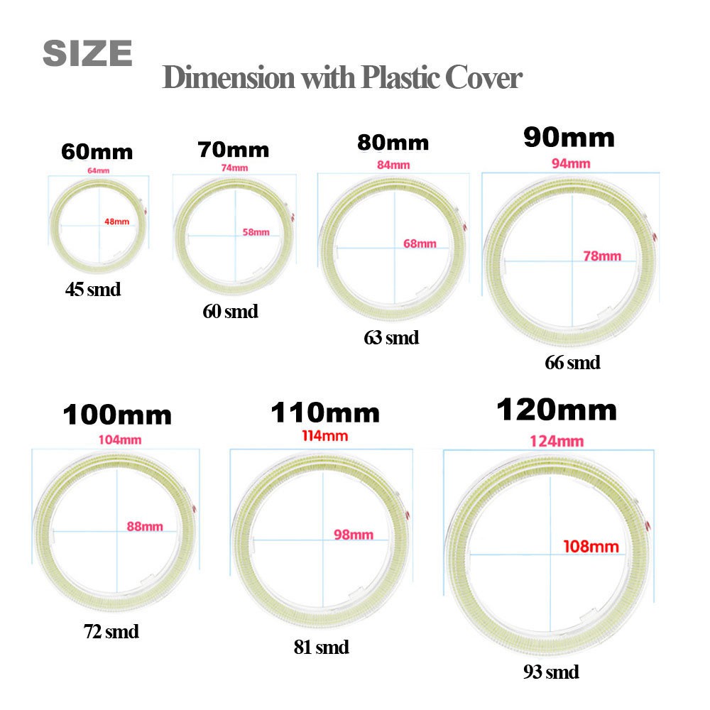 2 Pcs Super Brilhante Anéis De Halo COB LED Angel Eyes Farol Luz De Nevoeiro 60mm 70mm 80mm 90mm 100mm 110mm 120mm Carro Motocicleta DRL Lâmpada Acessórios Da