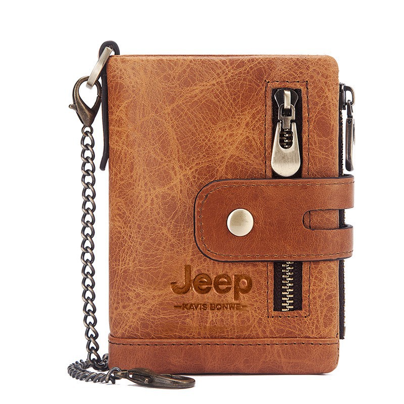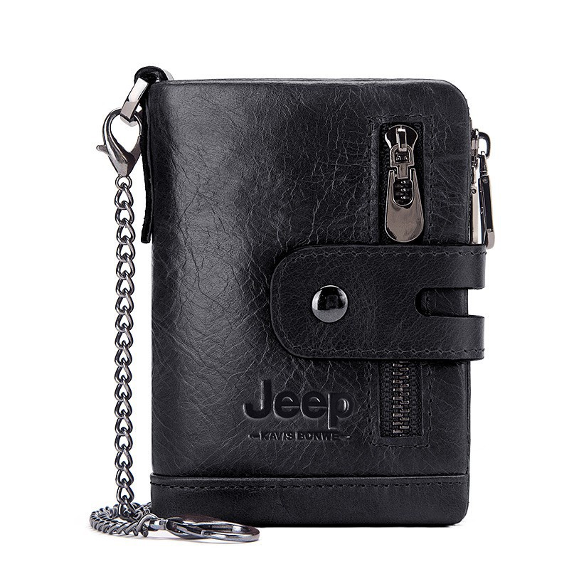 Jeep Carteira Masculina De Couro Genuíno Com Zíper