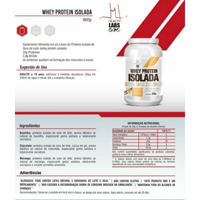 Whey Protein Isolada 900g Health Labs