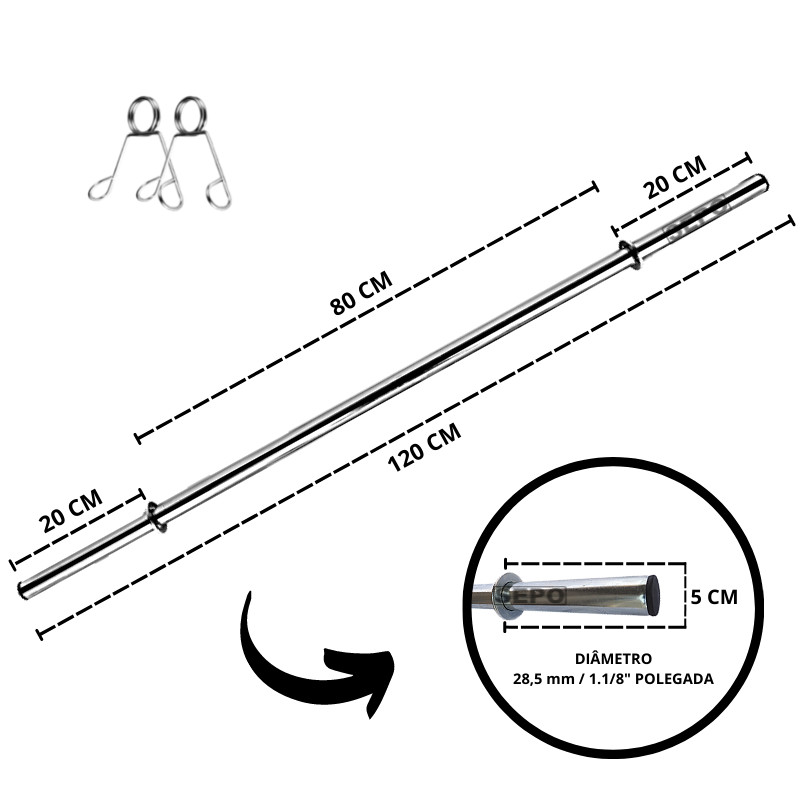Kit 20kg 8 Anilhas De Ferro + Barras e Presilhas Fitness