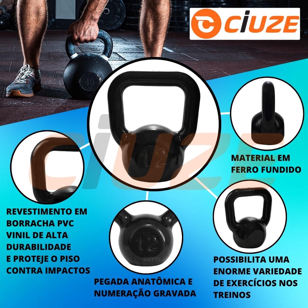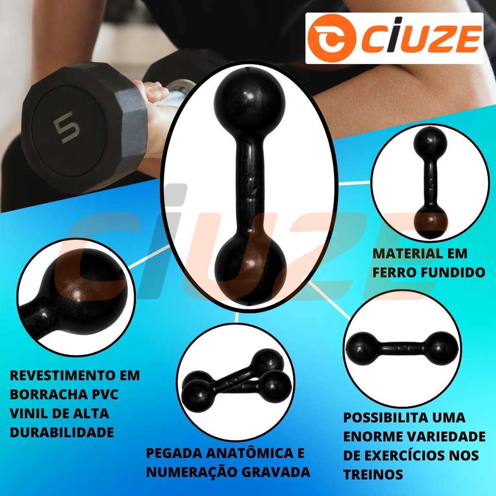 Kit Academia Fitness com 2 Halteres de 2Kg e 1 Kettlebell de 4Kg