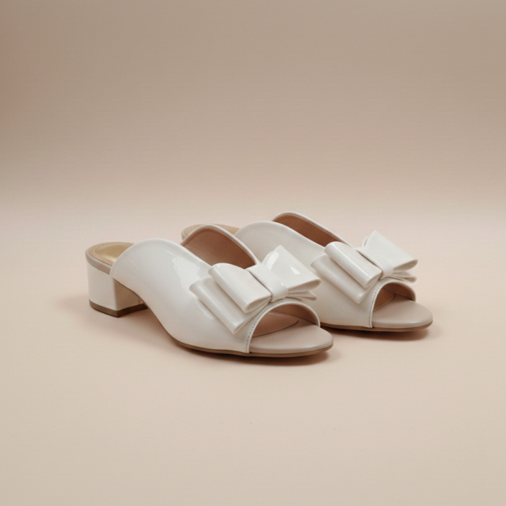 Tamanco Feminino Verniz Salto Bloco Baixo Laço Bico Redondo Moda Casual Elegante Confortável
