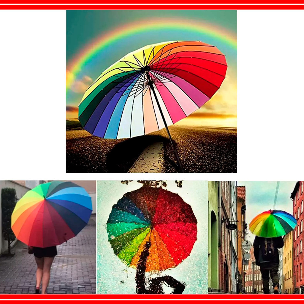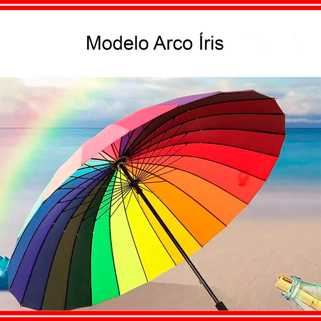 Guarda Chuva Arco Íris Colorido Grande 16 Varetas + Cabo Gancho P-131
