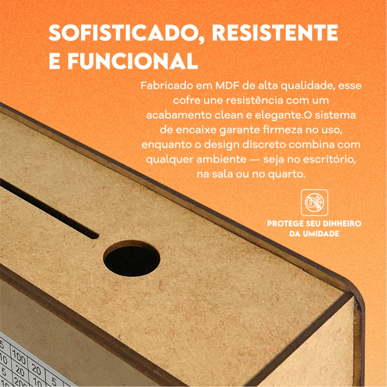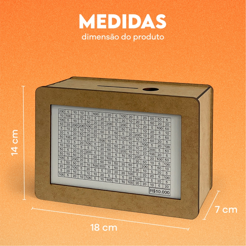 Cofre Desafio 1000 5000 10000 Caixa Dinheiro De Madeira Método Japonês Poupança Mdf